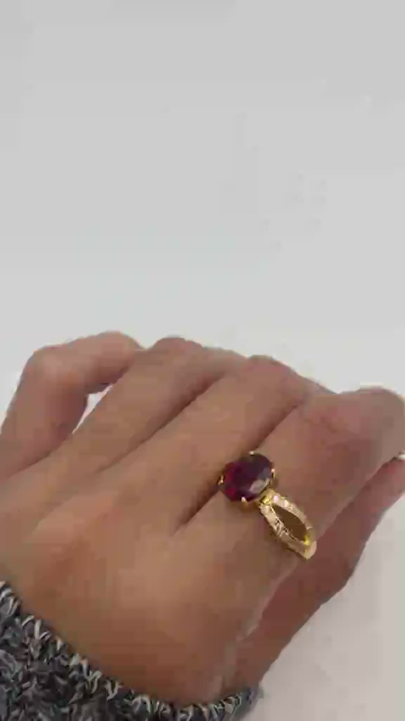 Beautifully crafted 18k Gold Vermeil Ring with a striking Oval Created Red Ruby, a symbol of passion and ideal for gifting.