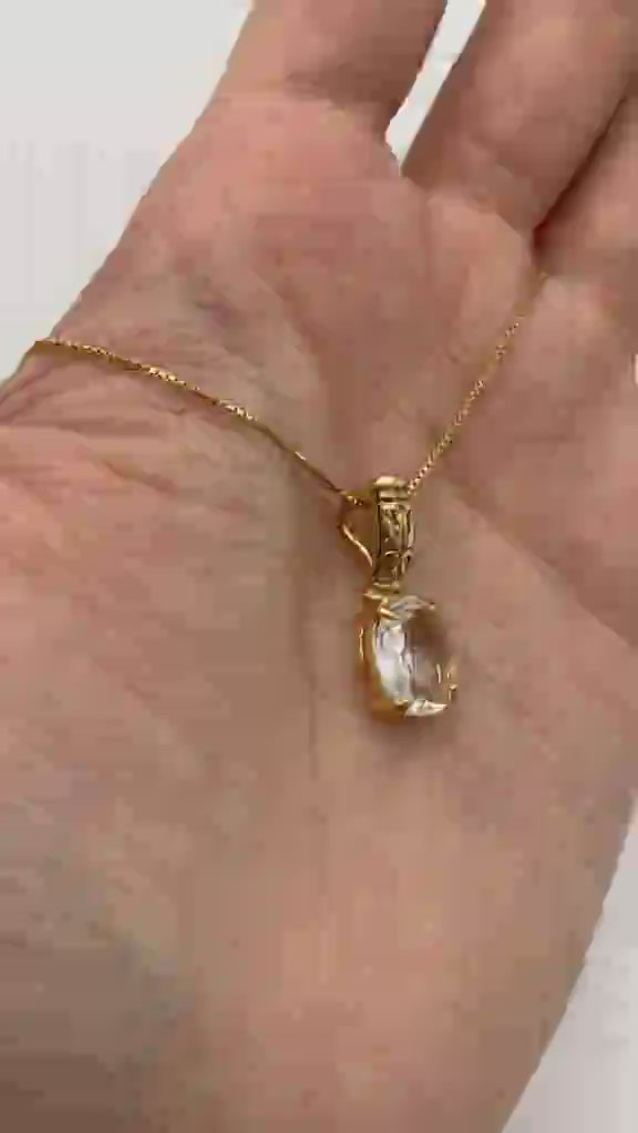 White Topaz Pendant set with a Natural White Topaz in a perfect diamond cut & flawless clarity at 10x8mm (3 Carats) from Brazil.