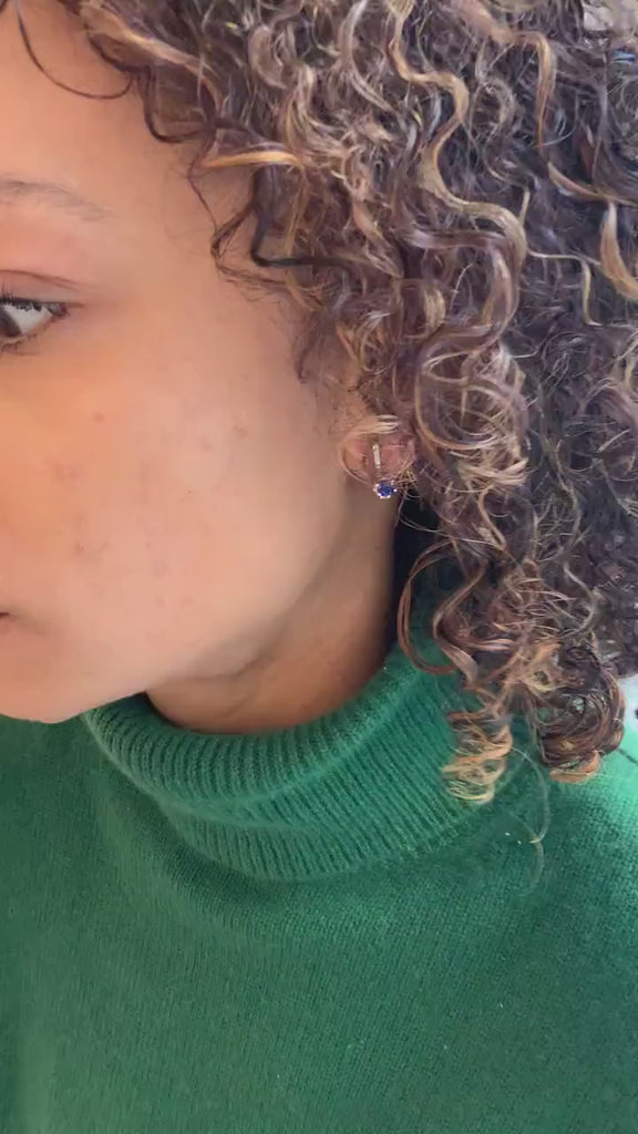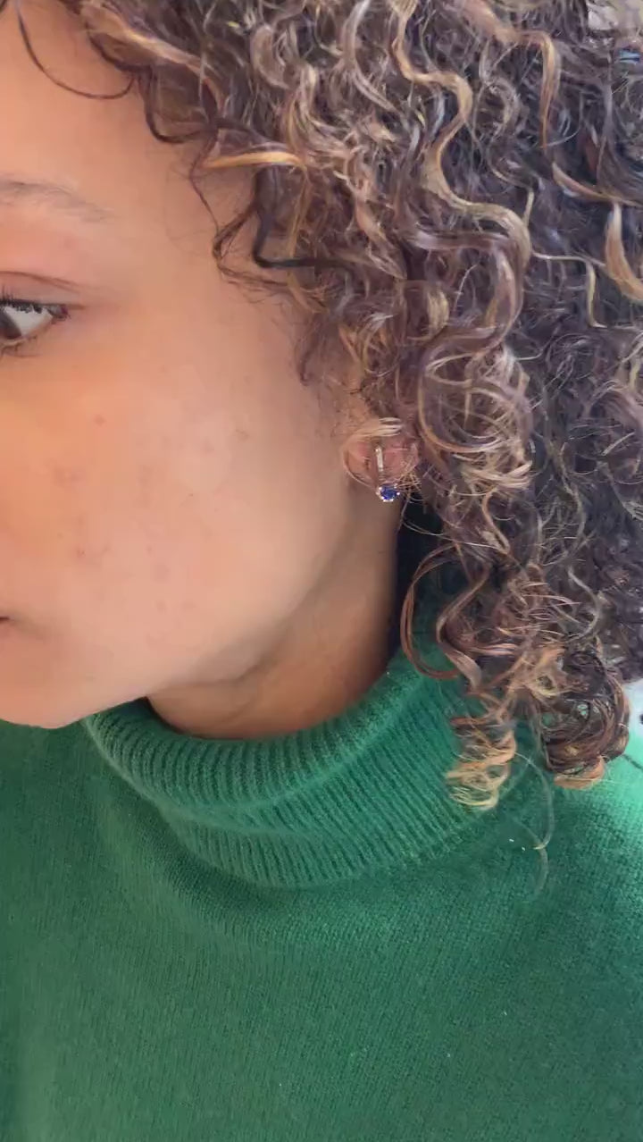 Dainty Sapphire Earrings set with a Created Sapphire in a perfect diamond cut, flawless clarity & rich royal blue color, 5mm diameter each (1.2 Ct a pair).