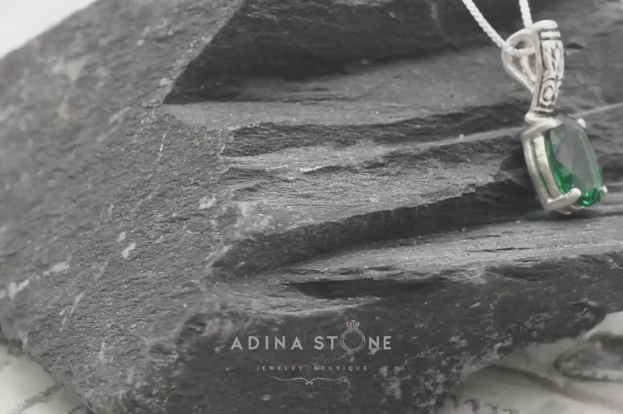 Elegant 925 Sterling Silver pendant featuring a stunning Oval Created Green Emerald, perfect for May birthdays and special occasions.
