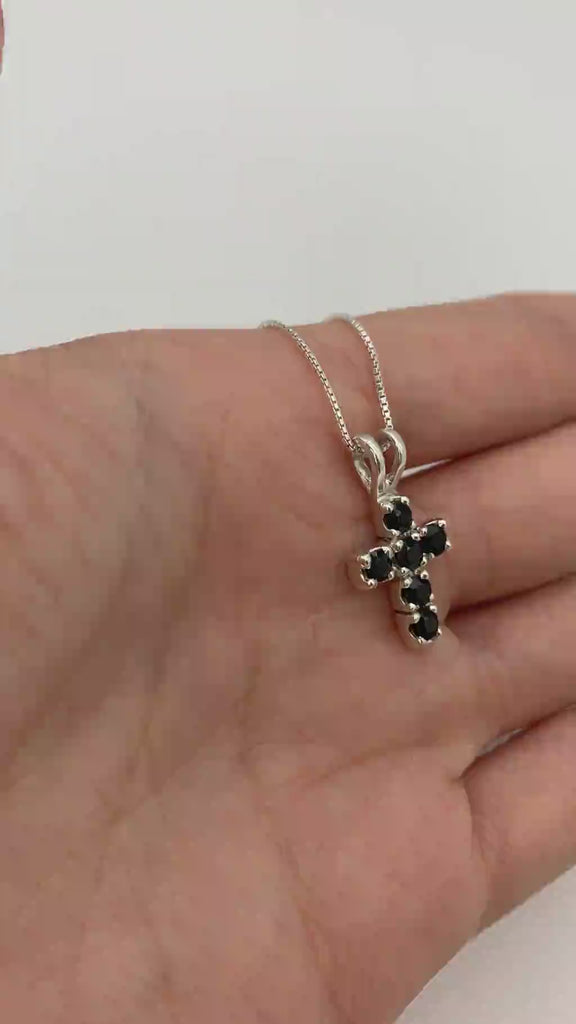 Onyx Cross Pendant set with a Natural Onyx in a natural black color, at size 3mm diameter each, 1 Ct combined.