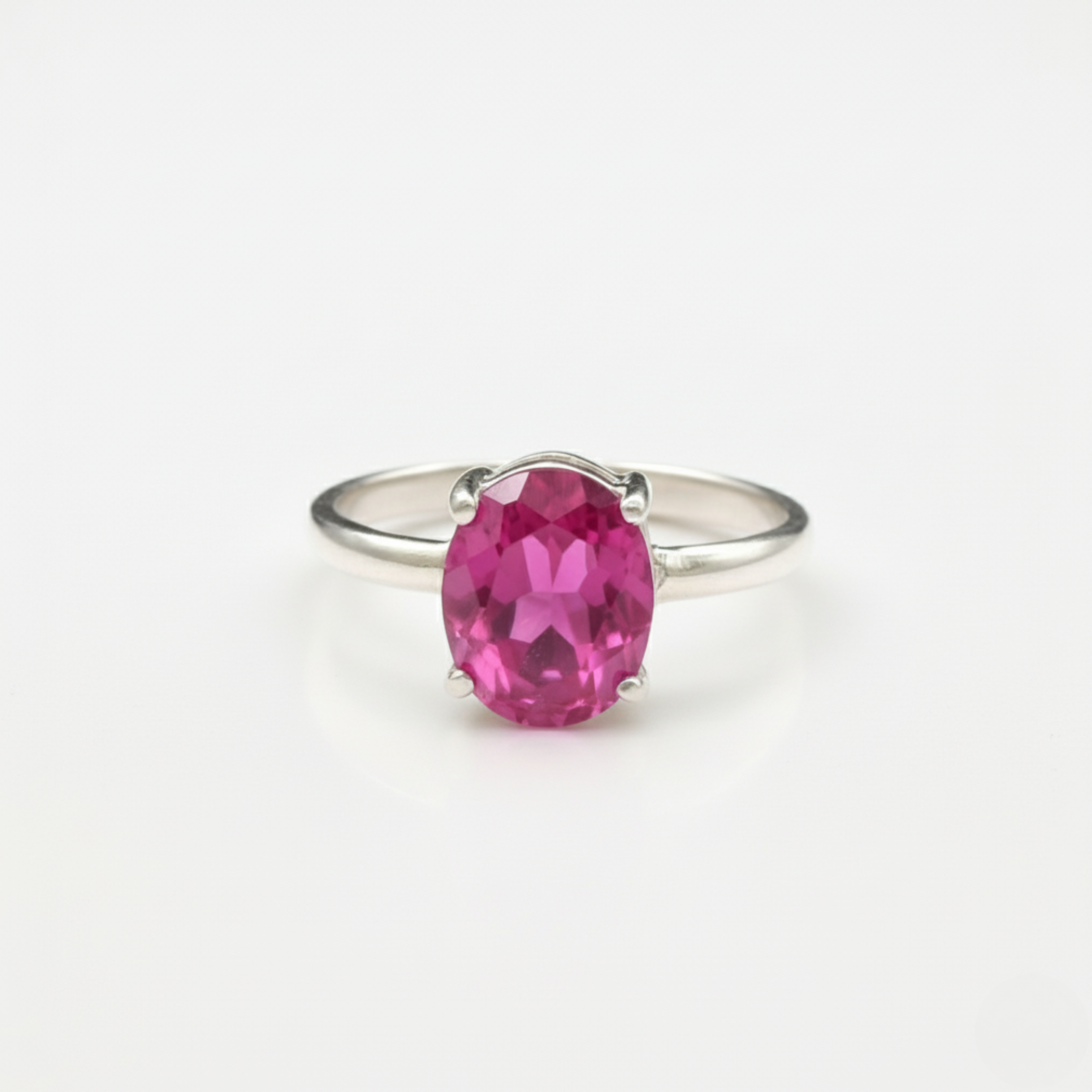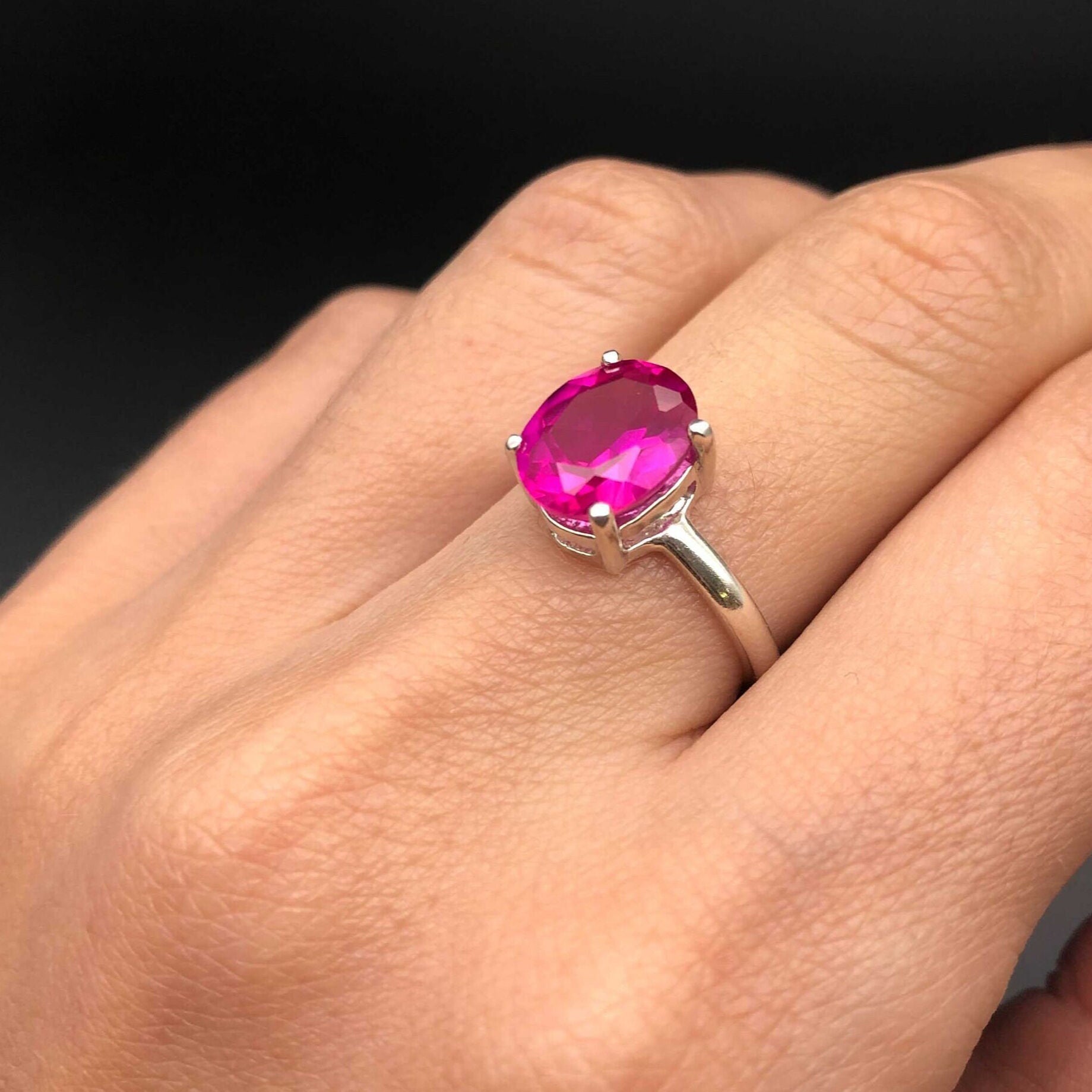 Created Alexandrite Ring made in 925 Sterling Silver with Created Pink Alexandrite in Prong setting, June Birthstone gift idea, symbolizes duality, renewal, and intuition, ideal for everyday wear and perfect for birthday gifting and special occasions.
