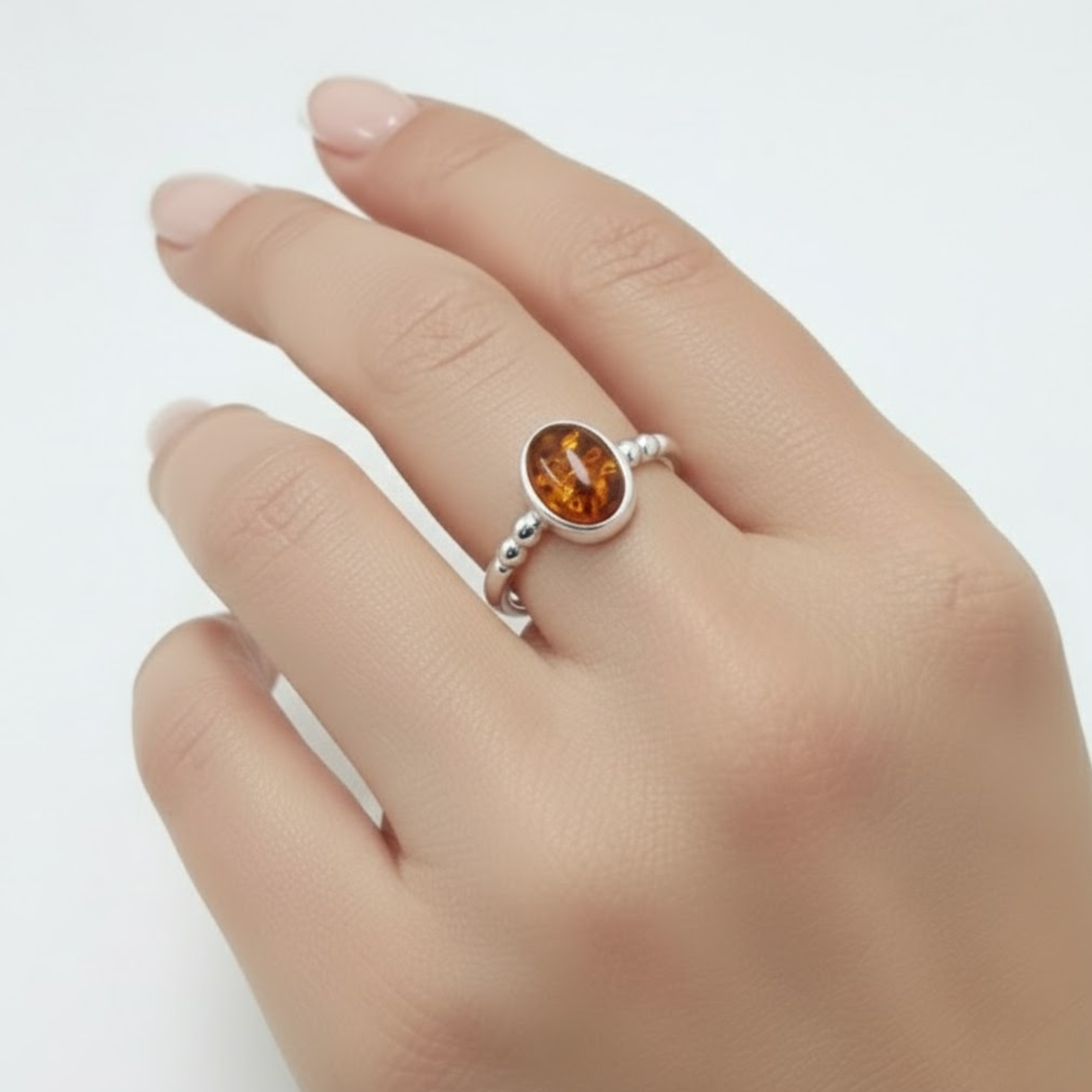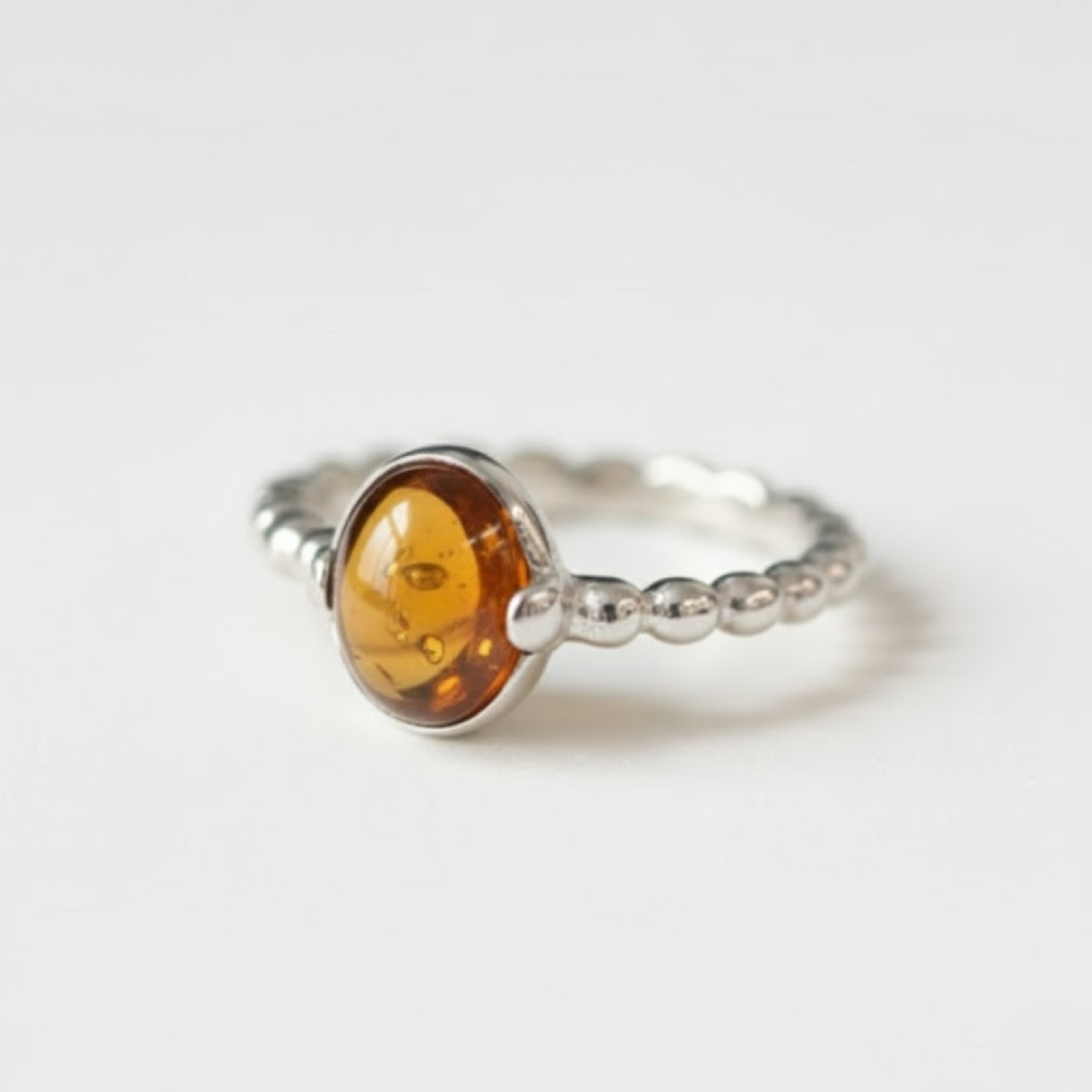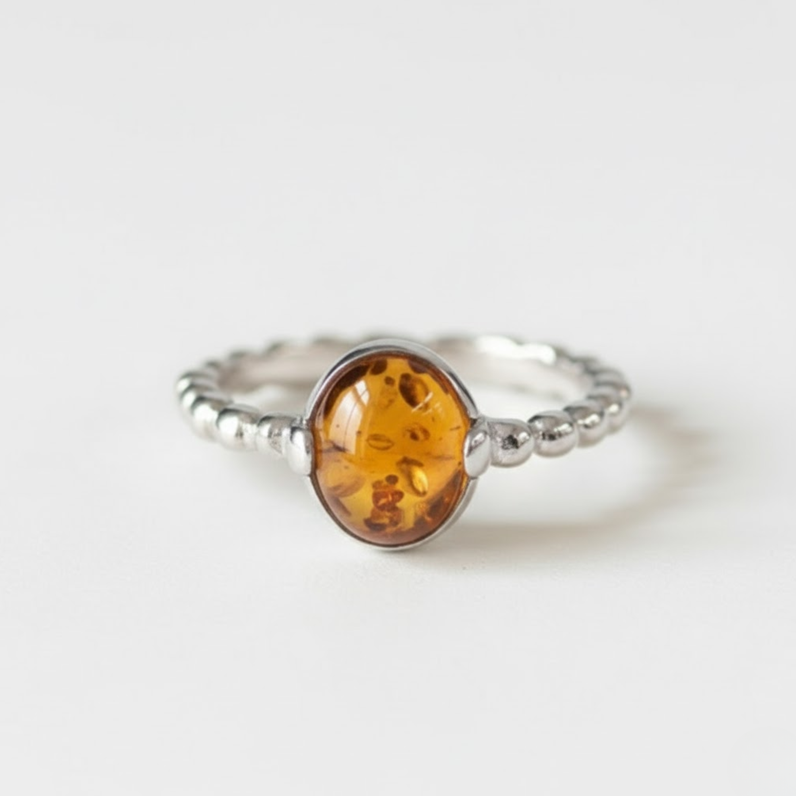 Bubble Amber Ring - Natural Amber Ring, Yellow Amber Ring