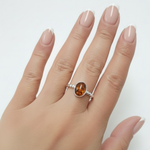 Bubble Amber Ring set with Natural Amber in a top grade & brownish-yellow translucent resin, at 10x8mm (3 Cts) from Russia.