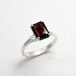 Emerald Cut Garnet Ring - Natural Garnet Ring - Red Gemstone Ring