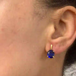 Created Sapphire Earrings made in 18k Gold Vermeil with Oval Created Blue Sapphire in Prong setting, September Birthstone gift idea, symbolizes sincerity, truth, and faithfulness, ideal for everyday wear and perfect for birthday gifting and special occasions.