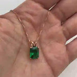 Green Emerald Necklace - Rose Gold Emerald Necklace - Green Radiant Cut Pendant