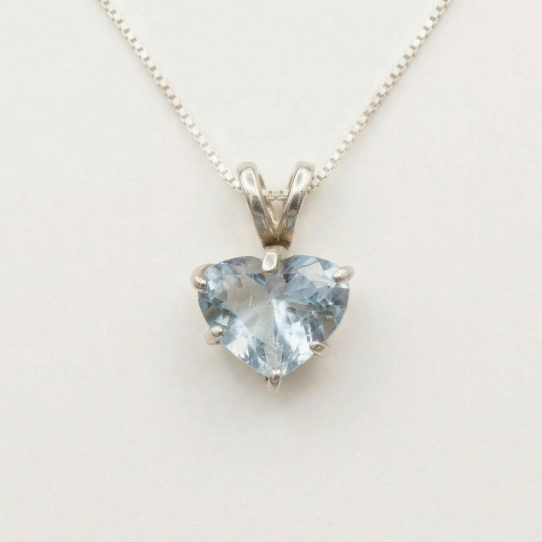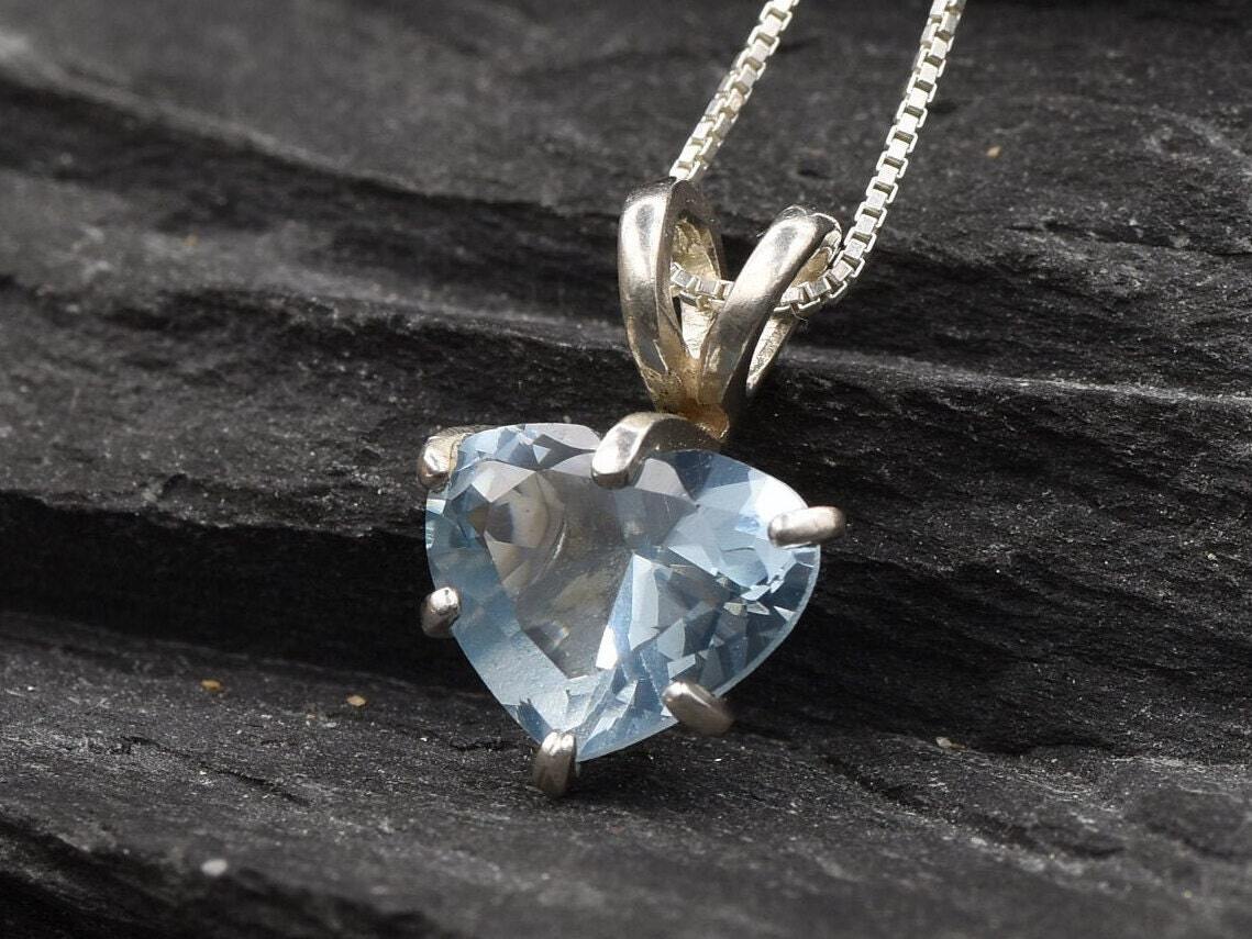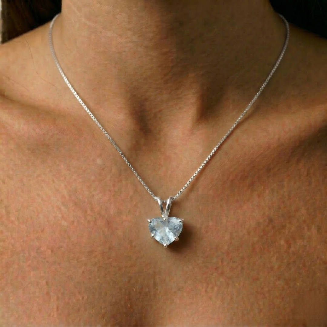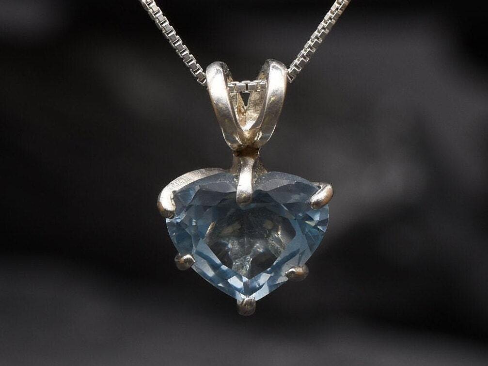 Aqua Heart Pendant - Aquamarine Love Necklace, Valentines Gift