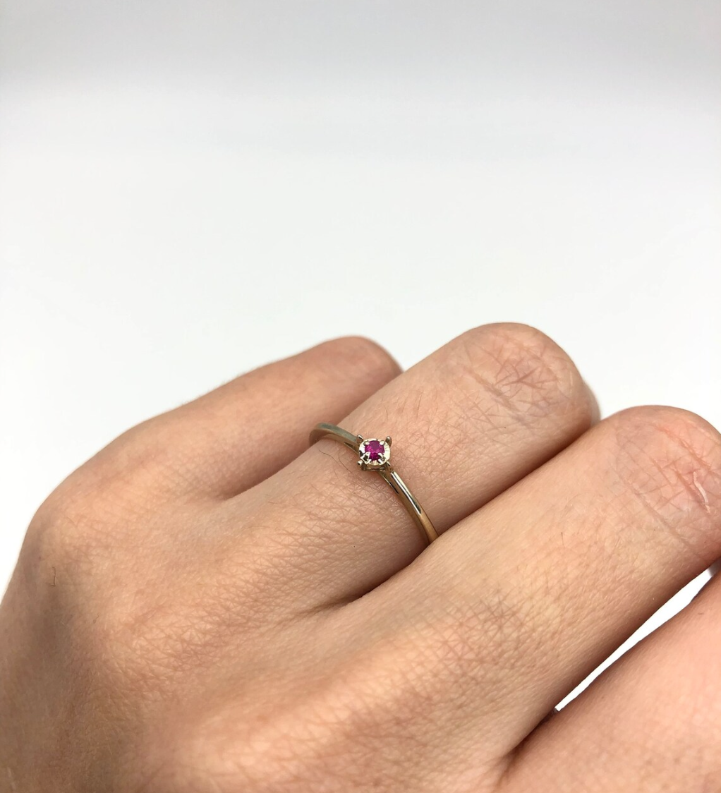 Natural Ruby Ring made in 18k Gold Vermeil with Round Natural Red Ruby in Pavé setting, July Birthstone gift idea, symbolizes nobility, purity, and passion, ideal for everyday wear and perfect for birthday gifting and special occasions.