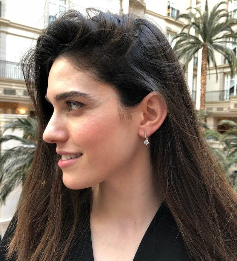 Aquamarine Earrings, Created Aquamarine, Blue Earrings, Vintage Earrings, Blue Diamond Earrings, Diamond Earrings, Solid Silver, Aquamarine(1)