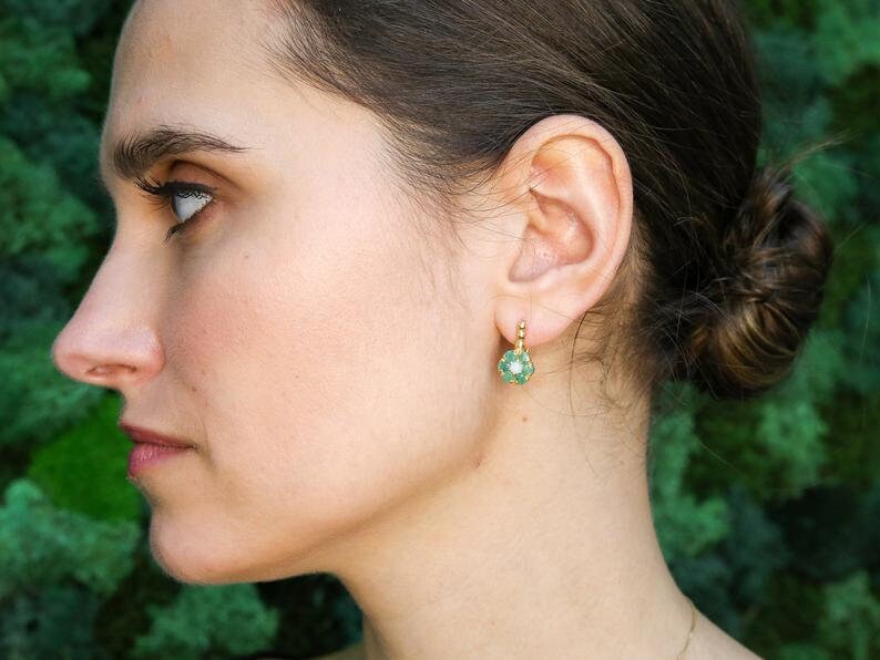 Elegant 18k Gold Vermeil Natural Emerald Earrings, perfect May birthstone gift for growth, harmony, and emotional healing.