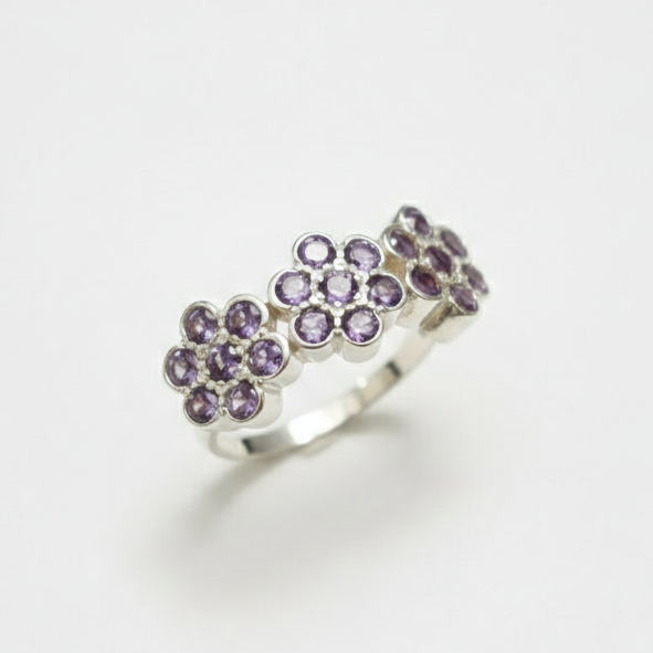 Genuine Amethyst Ring - Purple Flower Ring - February Birthstone Floral Ring