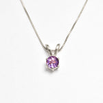 Gold Amethyst Pendant set with Natural Amethyst = in a perfect diamond cut, flawless clarity & stunning matural purple color, at 5mm diameter (0.46 Cts) from Brazil.