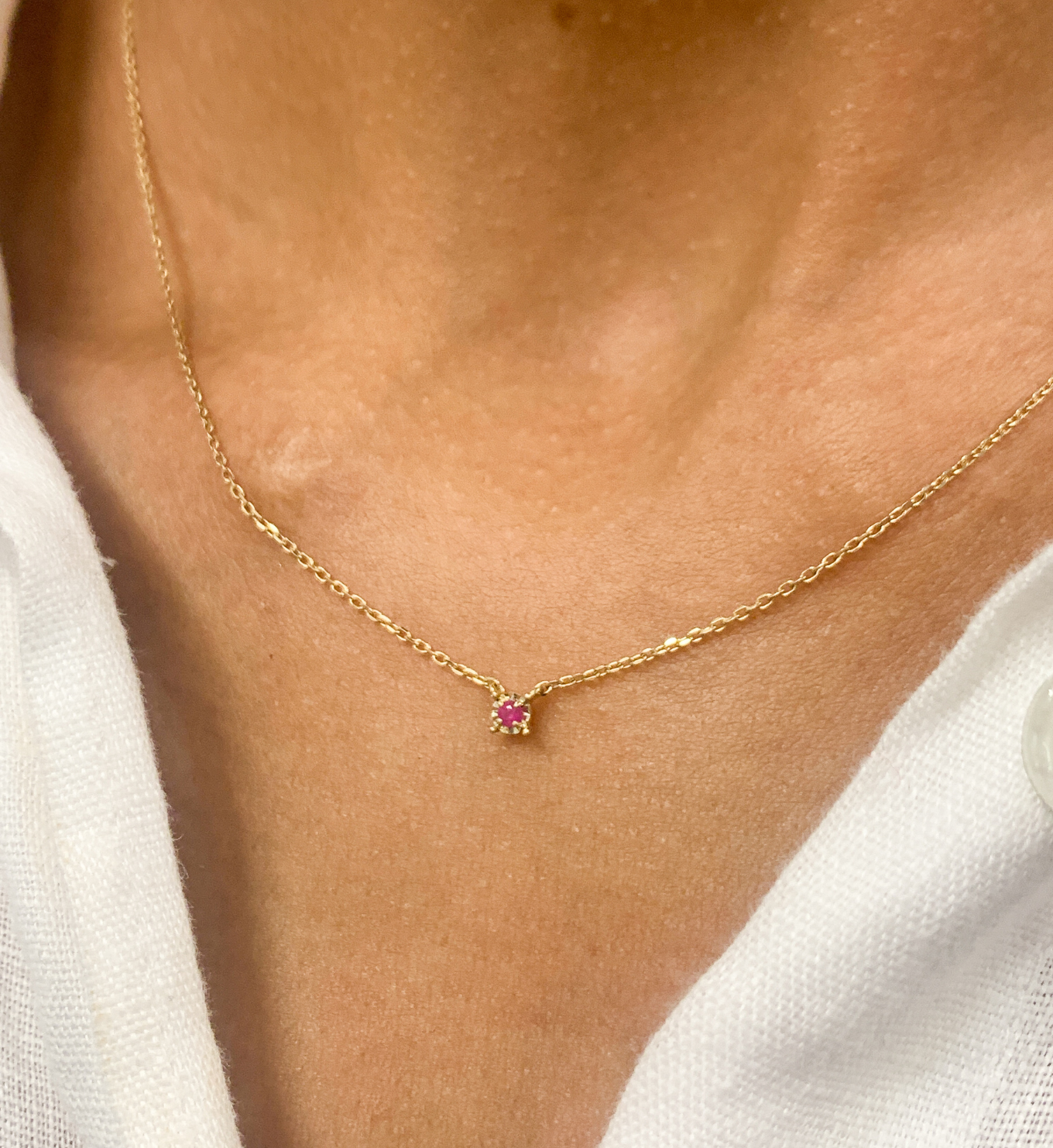 Gold Peridot Necklace worn by a model
