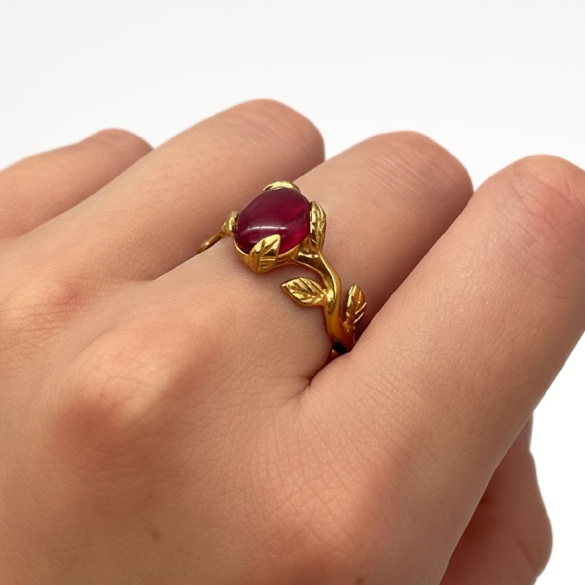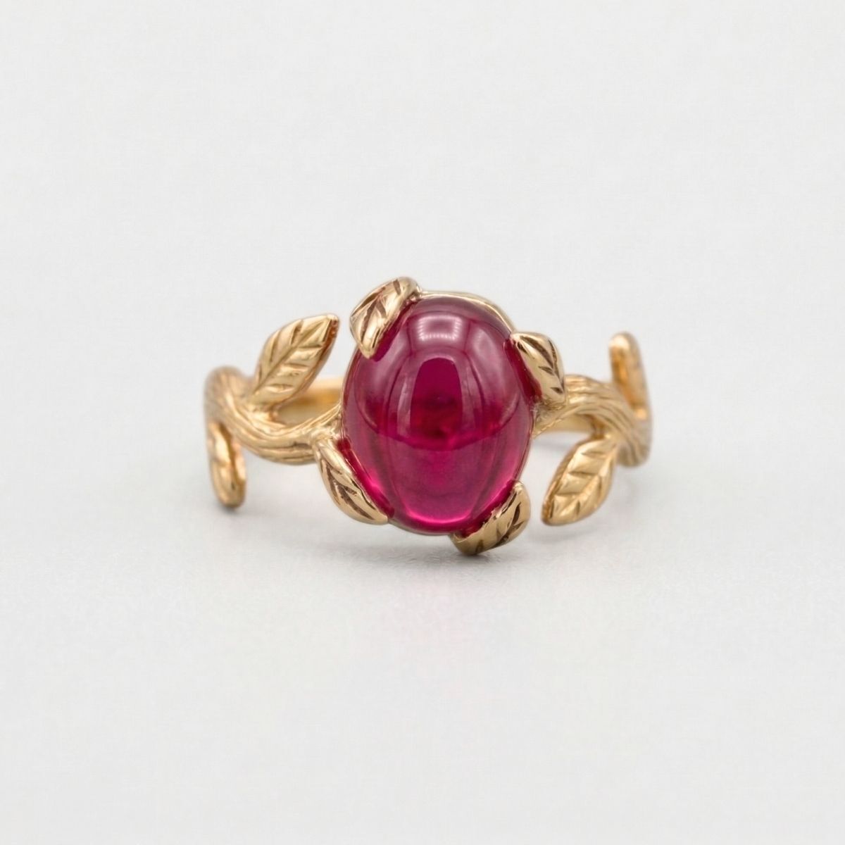 Elegant Ruby Ring in 18k Gold Vermeil, featuring Oval Created Red Ruby, perfect birthday gift and symbol of passion.