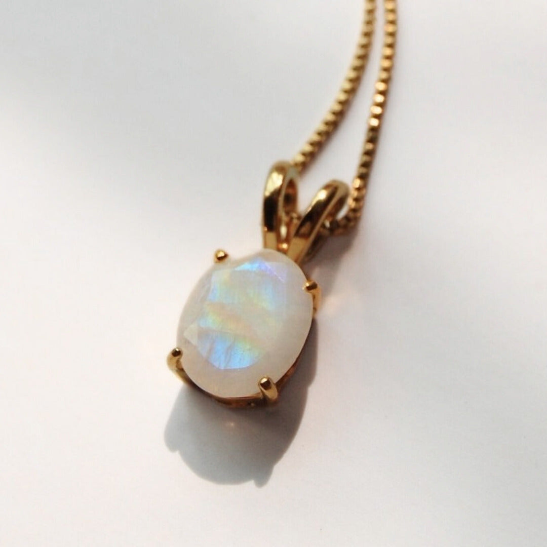 Gold Moonstone Necklace - Rainbow Moonstone Pendant - June Birthstone Gift