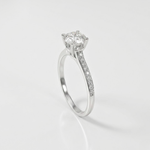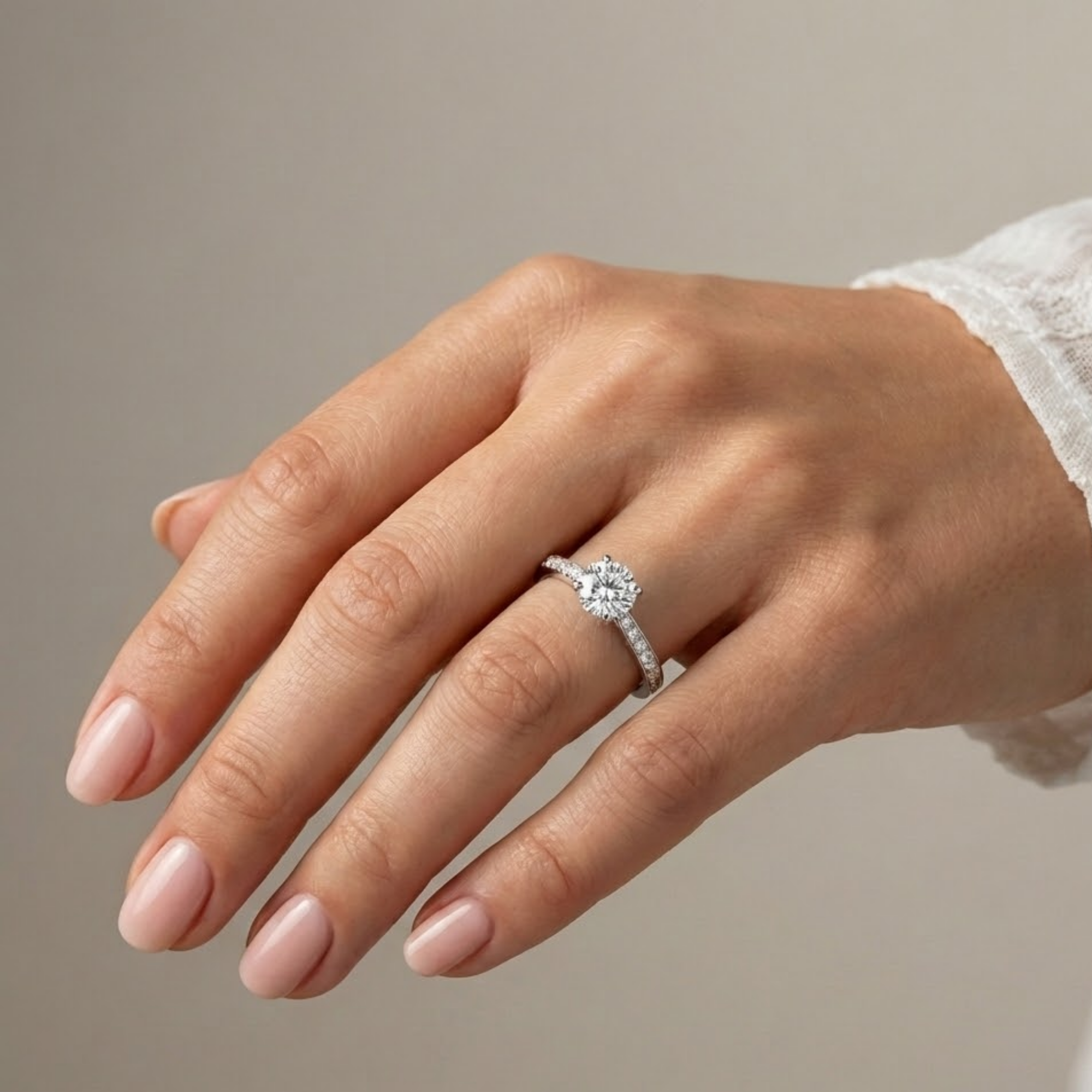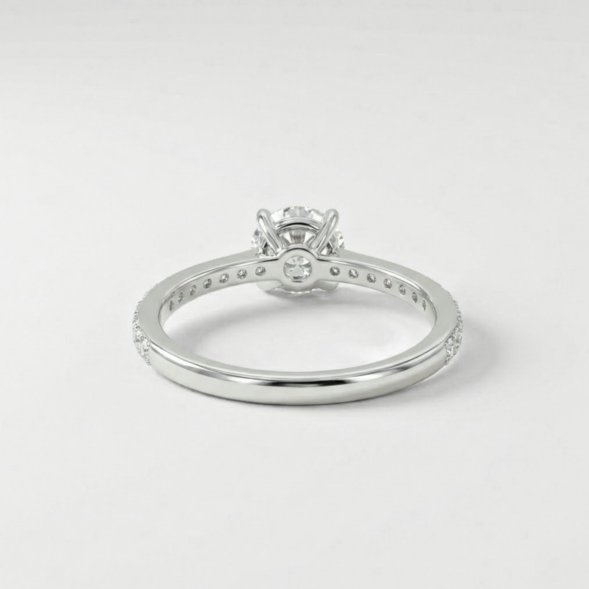 A timeless solid white gold engagement ring featuring a brilliant 1ct natural center diamond and a shimmering pavé band for extra sparkle. Designed for engagements, anniversaries, and life’s most special moments.