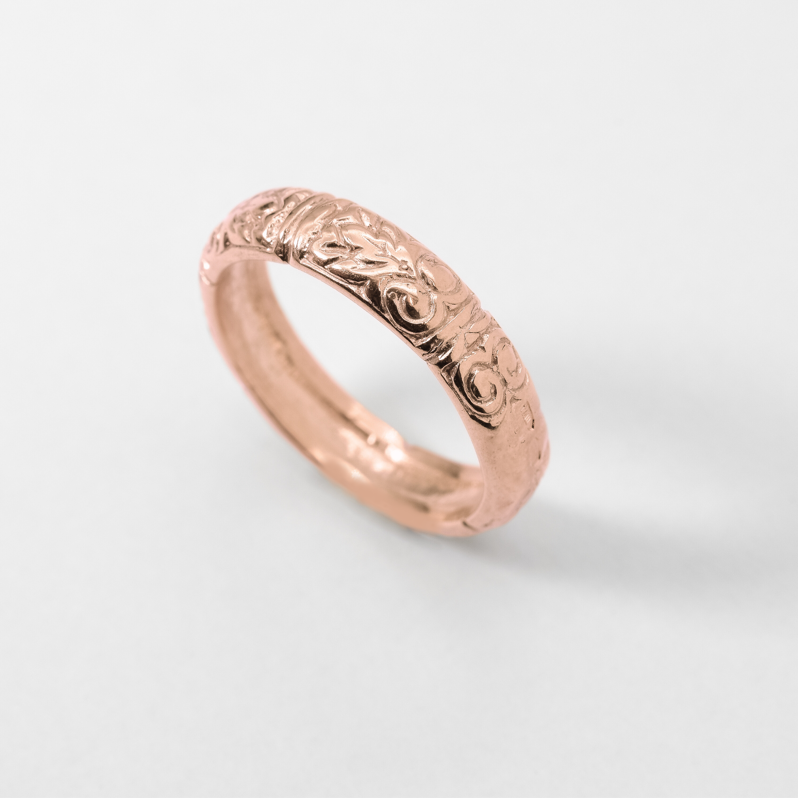 Engraved Tribal Ring - Vintage Rose Gold Band - Pink Gold Ring