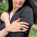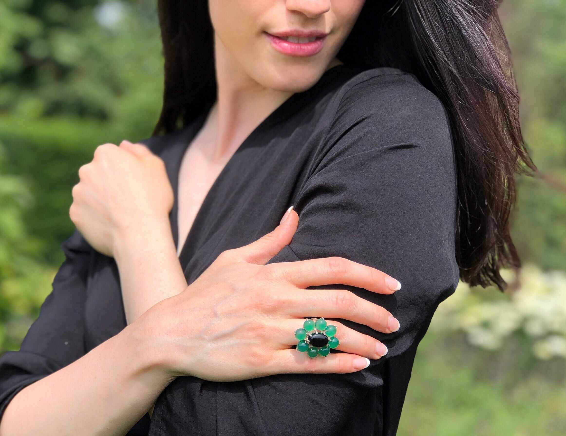Onyx Flower Ring - Large Emerald Ring - Green Statement Ring