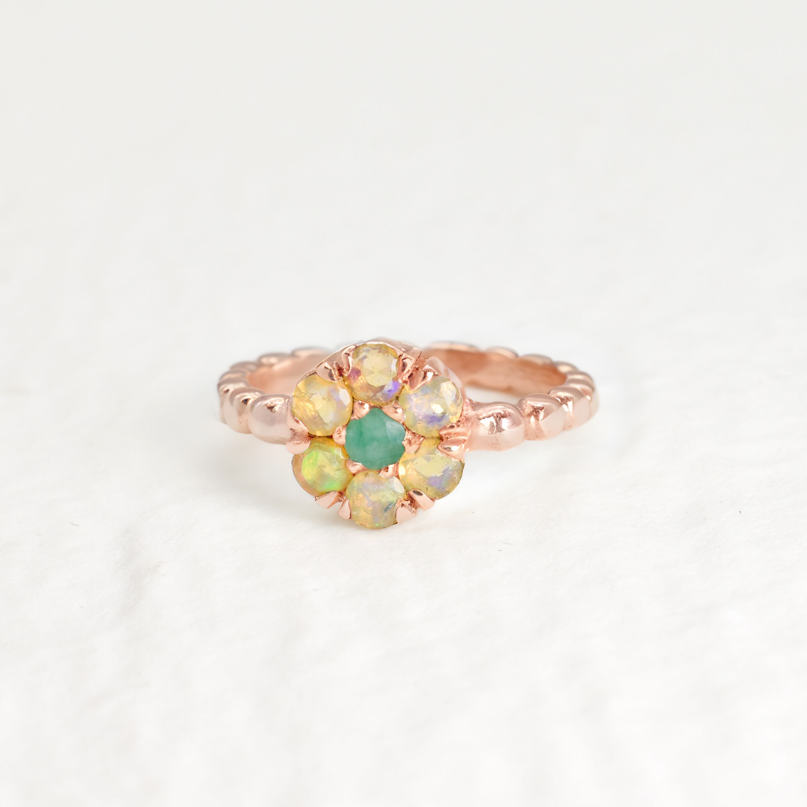Opal Flower Ring - Rose Gold Opal Ring - Emerald Daisy Ring