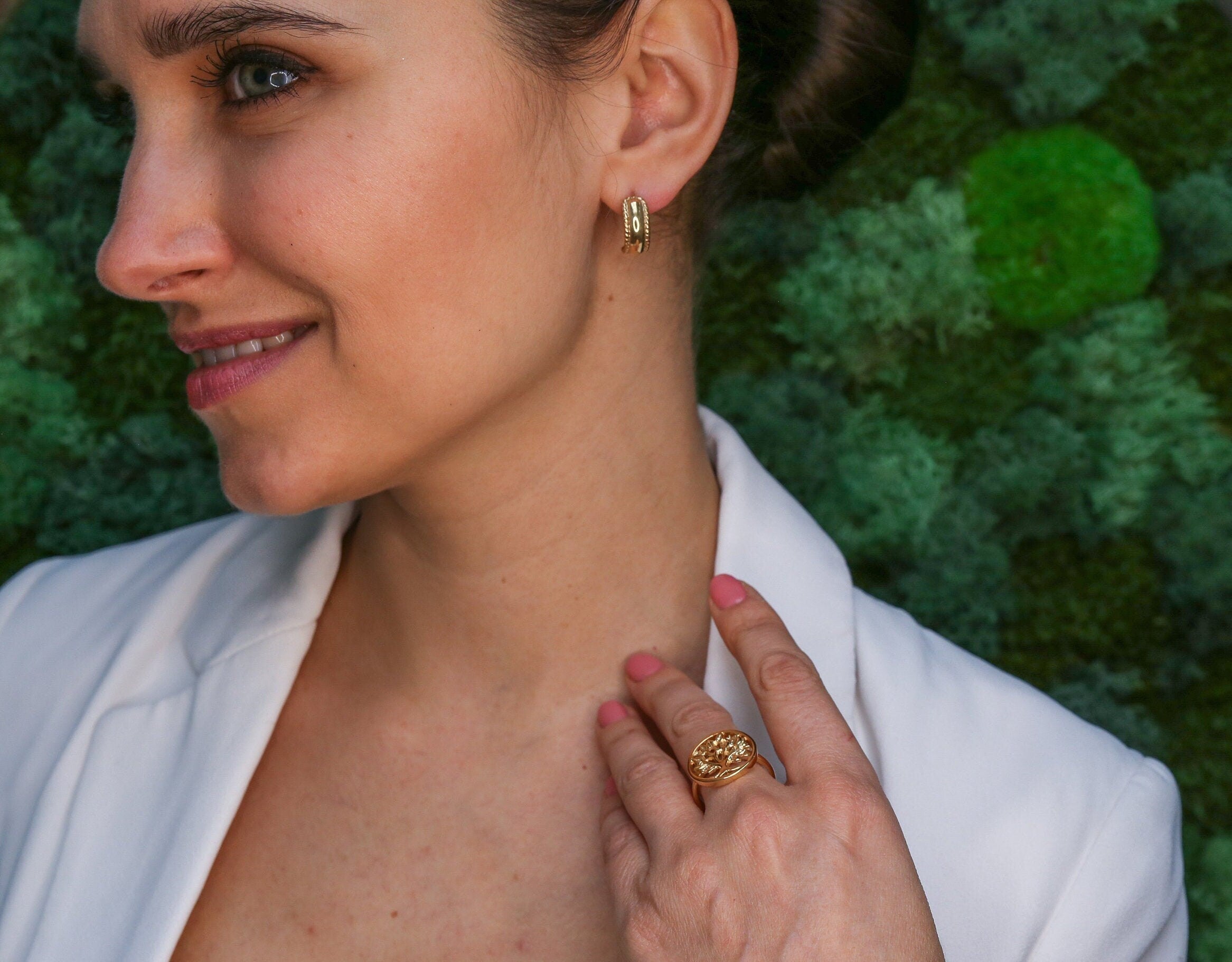 In Adina Stone we make sure we use the best quality materials for our customers - For our platings we use Gold Vermeil, which is the best standard for gold plating - it’s a thick 3 micron layer of 18k gold plating over solid 925 Sterling Silver - so you only have precious metals in your pieces.