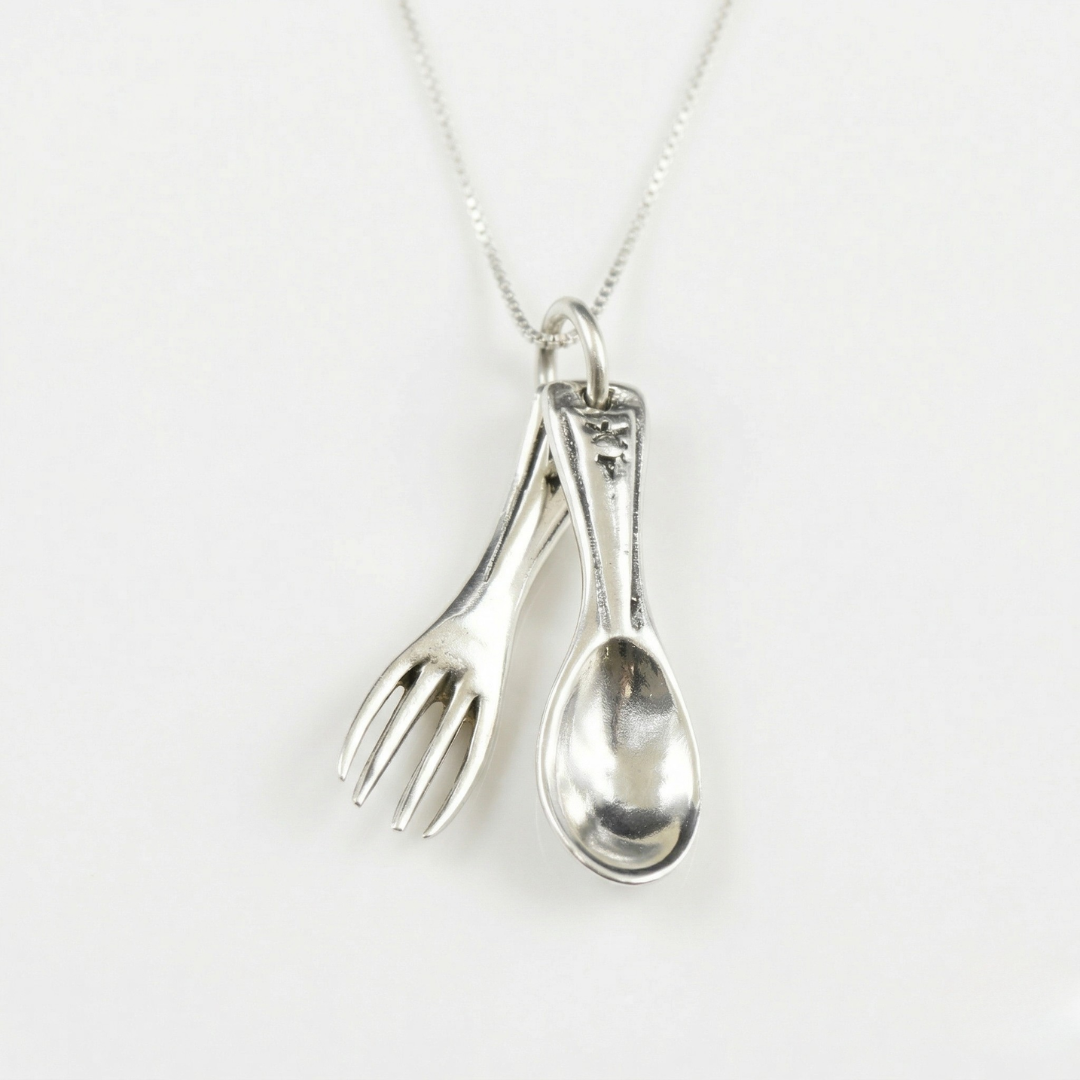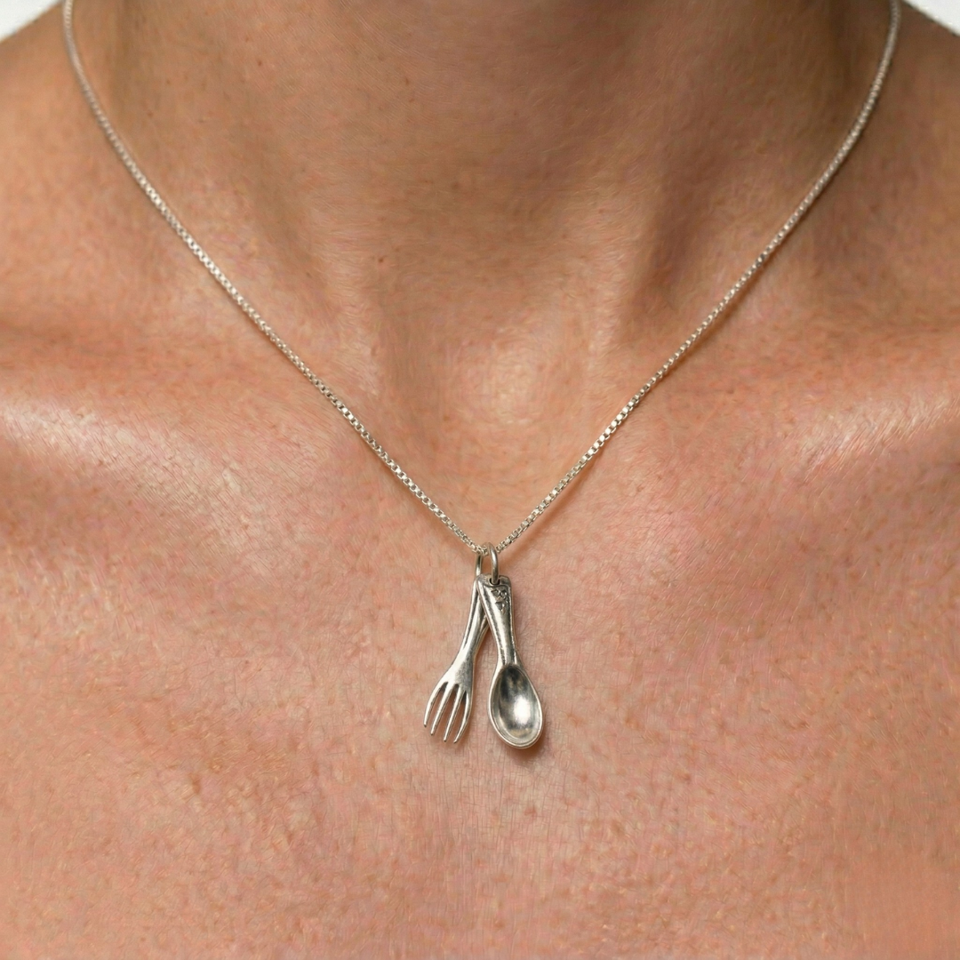 Spoon and Fork Necklace - Silver Cutlery Pendant - Food Lover Necklace