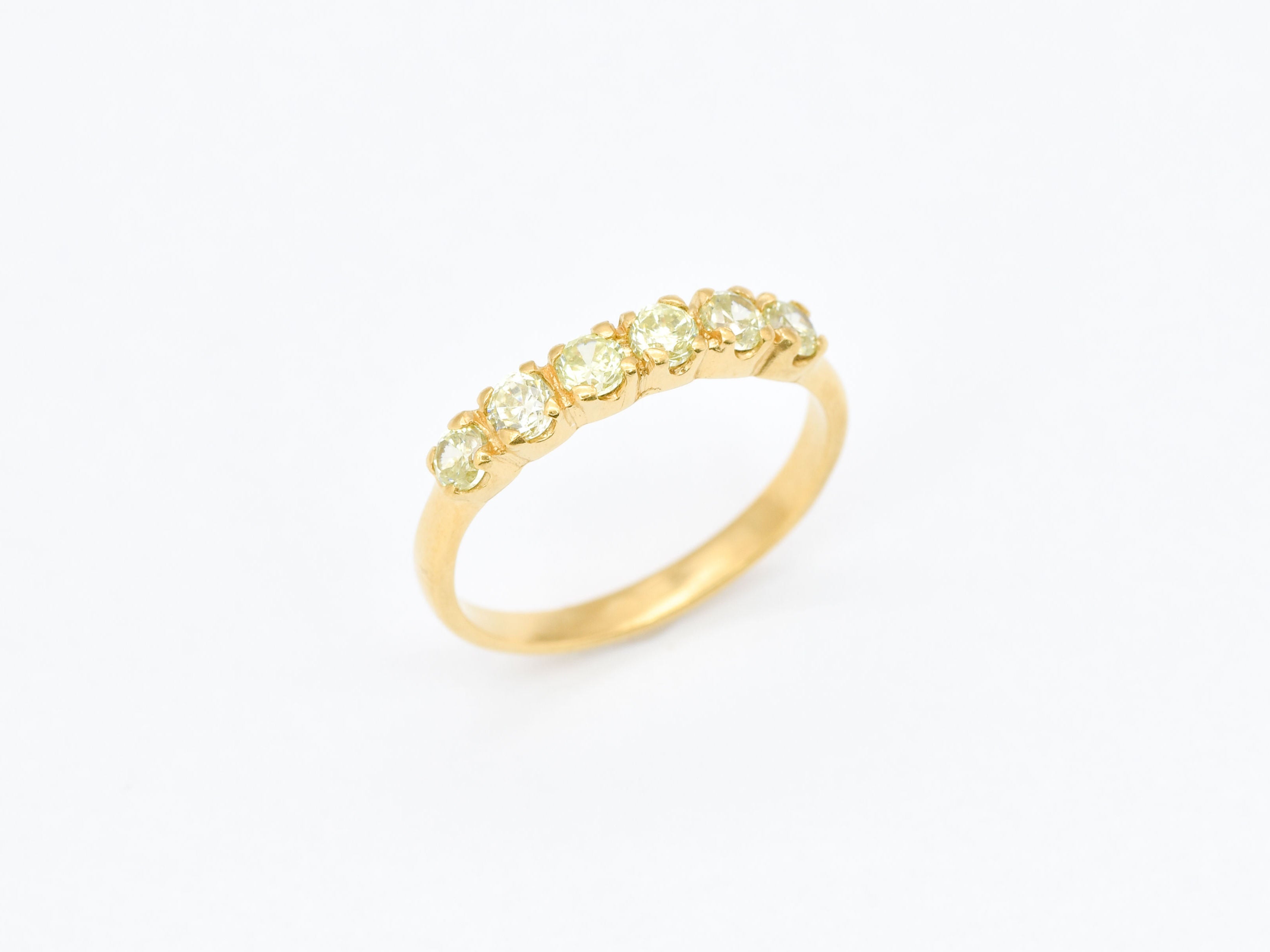 Gold Peridot Ring set with Created Peridot in a flawless clarity & light green color, at 3mm each (0.7 Cts combined).