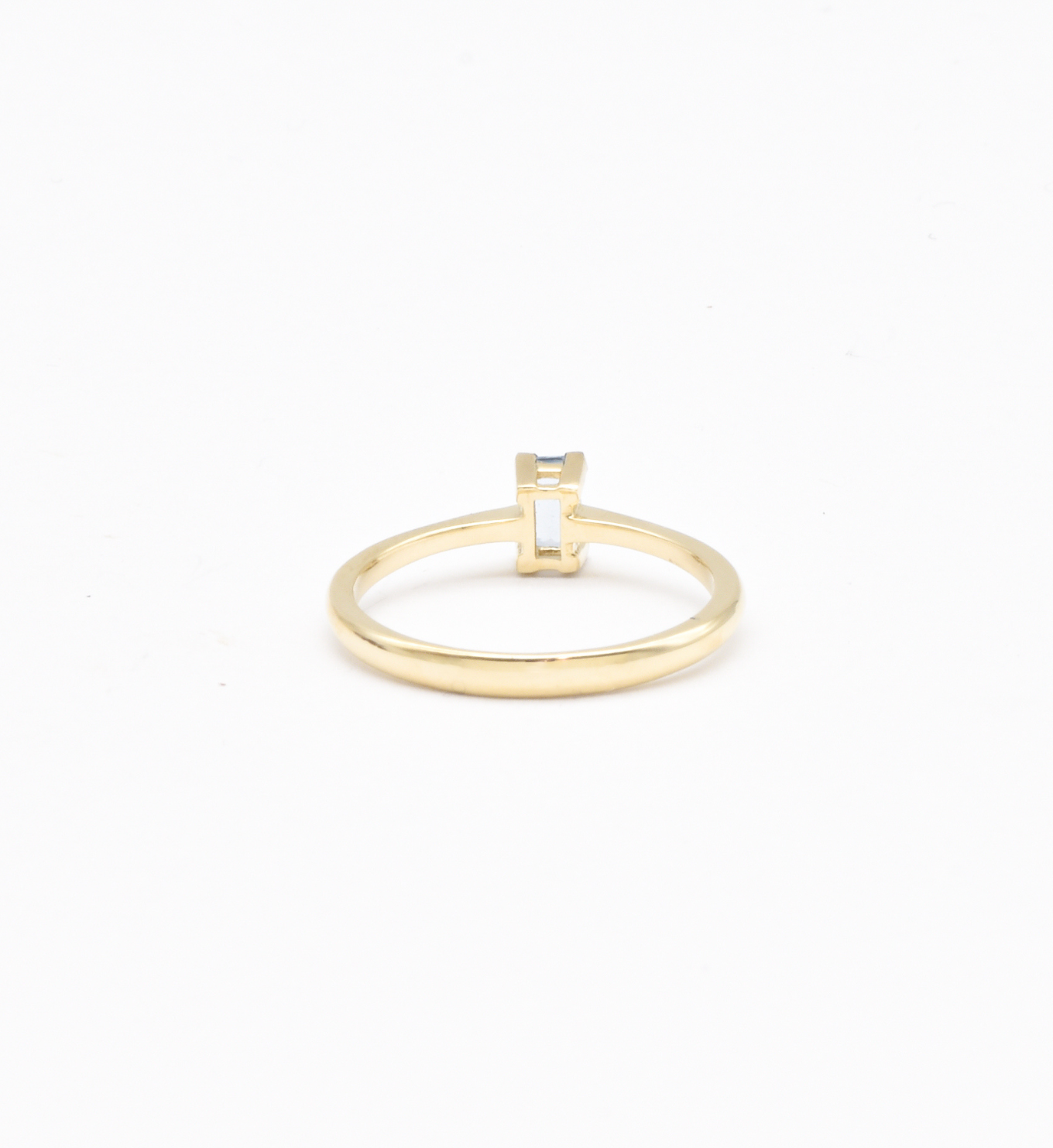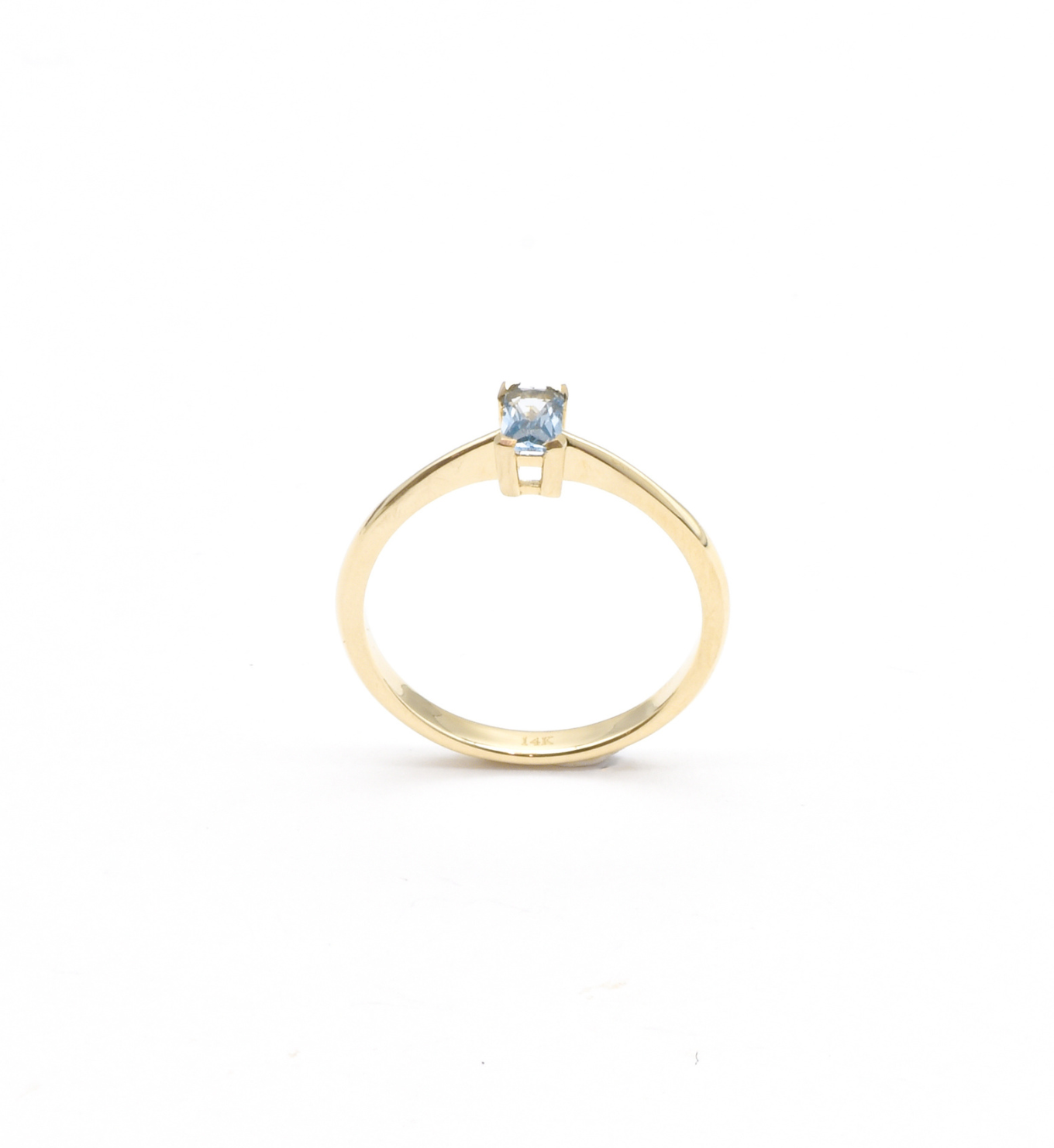 Blue Baguette Gold Ring set with Natural Blue Topaz, size 5x3 millimeters, 0.2 Carats.