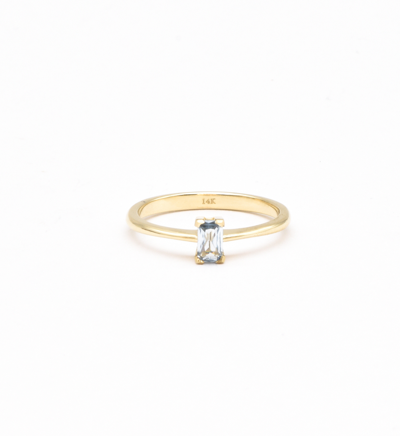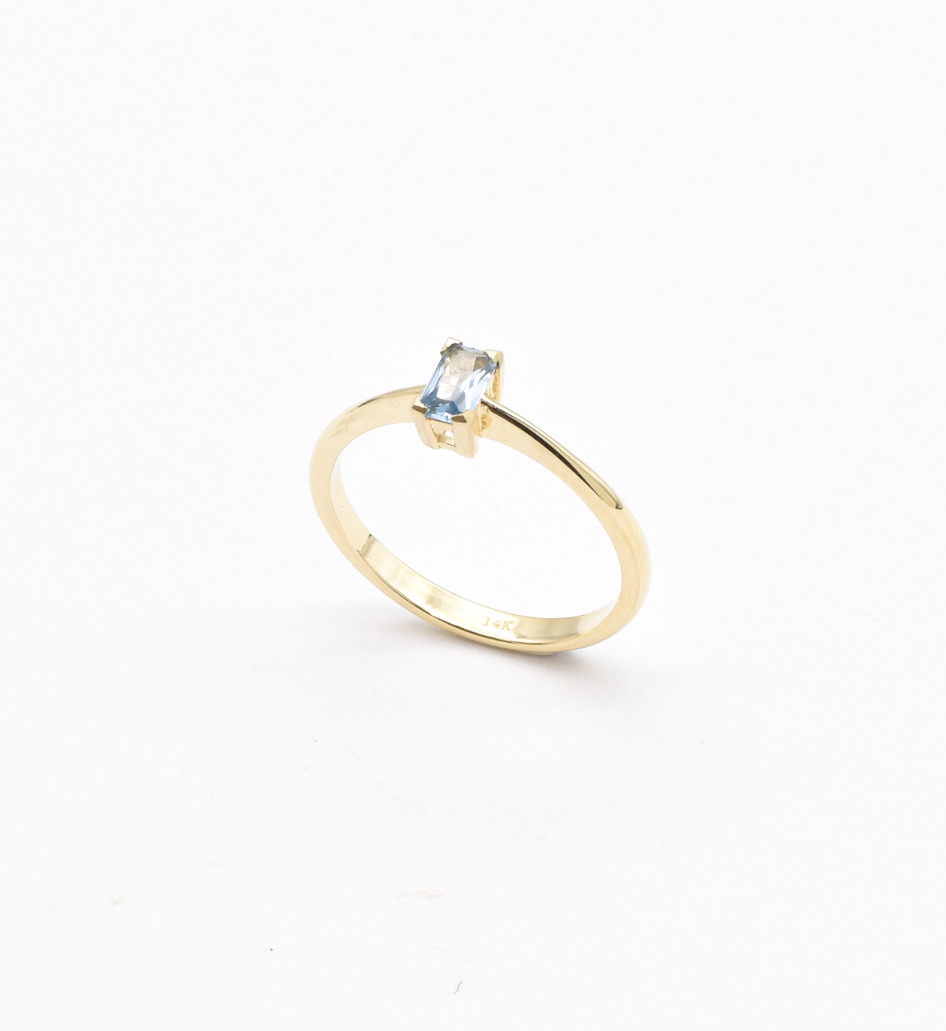 Blue Baguette Gold Ring - Solid 14k Gold Ring - Classy Real Topaz Ring