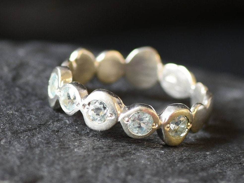 Blue Topaz Ring, Bubble Band, Natural Blue Topaz Sky, Stackable Ring, Boho Band, Blue Bohemian Ring, December Birthstone, Solid Silver Ring(1)