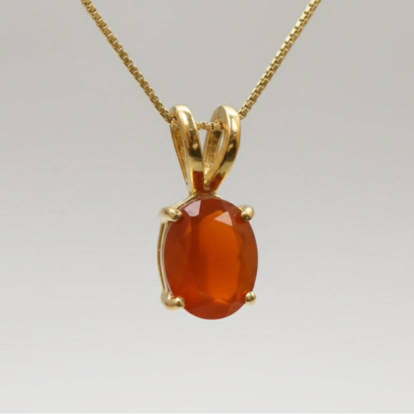 Gold Carnelian Pendant - Natural Carnelian Necklace, Gold Oval Pendant
