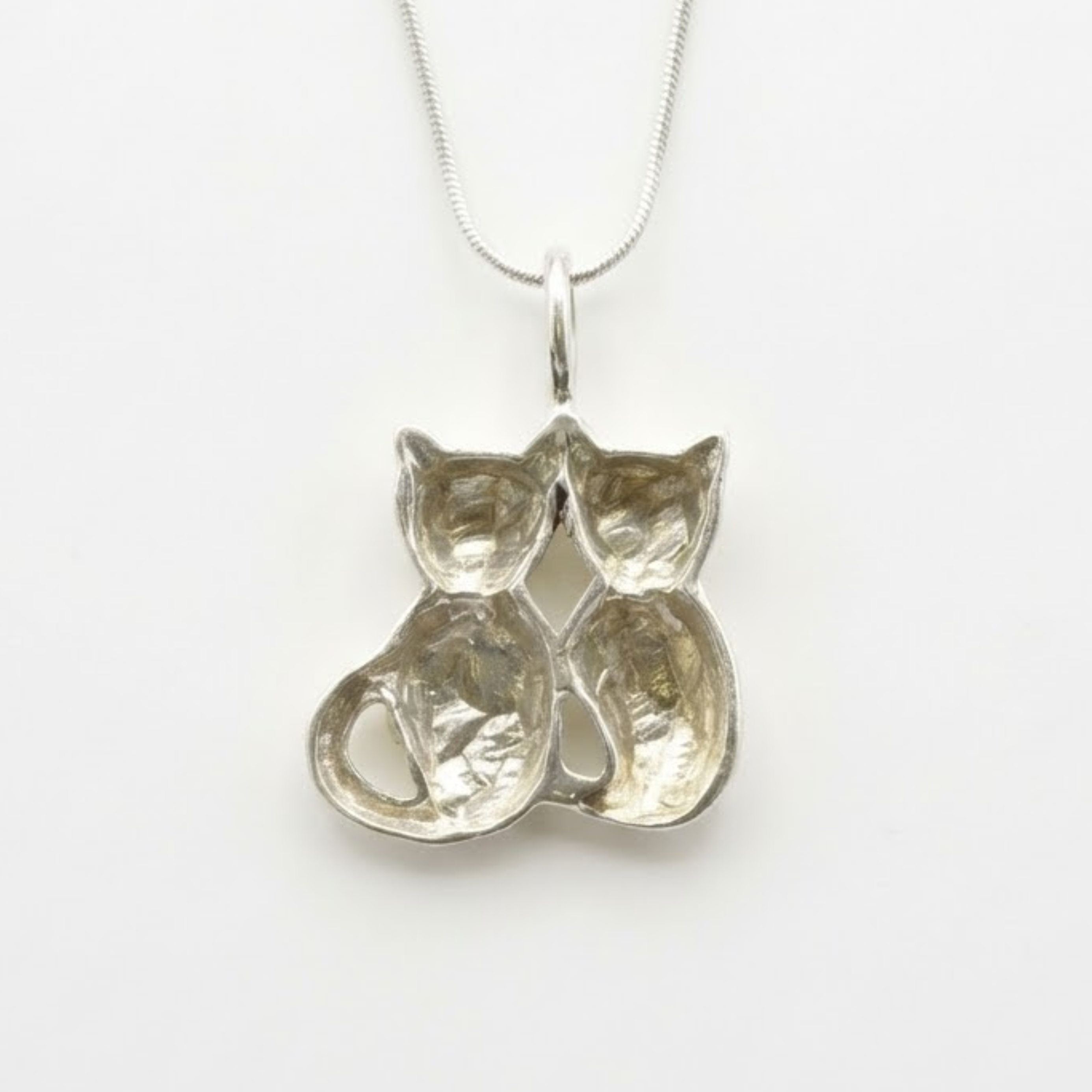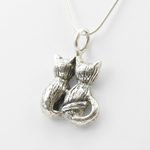 Two Cats Pendant - Cat Lover Necklace - Silver Cat Necklace