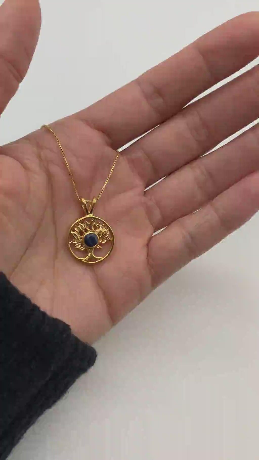 Gold Natural Sapphire Pendant - Gold Tree of Life Necklace - September Birthstone Tree Necklace