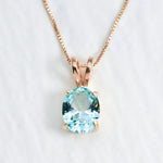 Gold Aqua Pendant - Created Aquamarine Necklace, Blue Oval Pendant