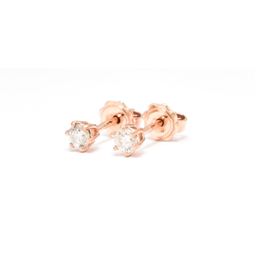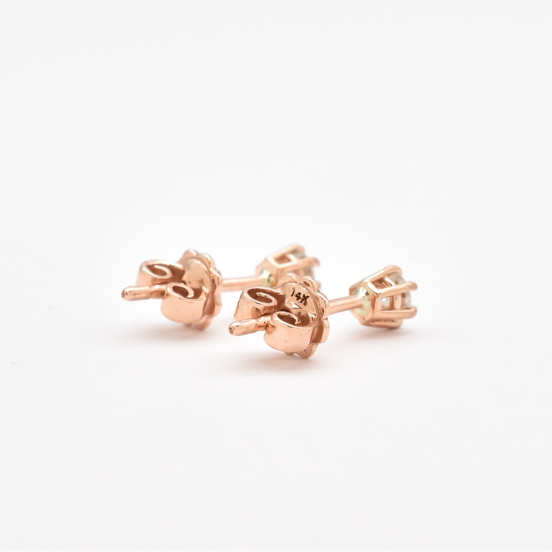 Certified Diamond Earrings - Solid Rose Gold Earrings - 3mm Diamond Studs
