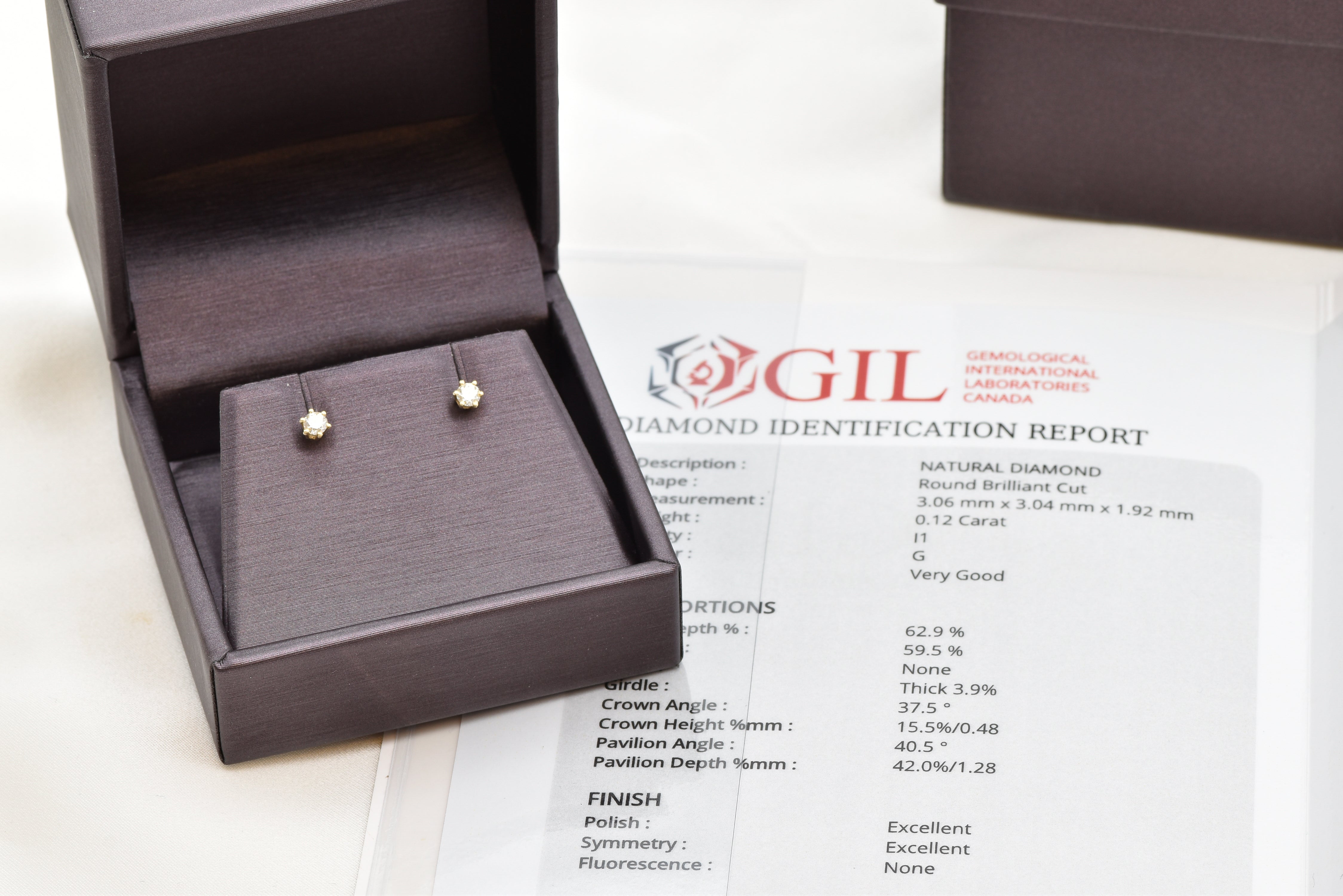 Certified Diamond Earrings set with a Natural Diamond, size 3 millimeters diameter each, 0.24 Carat a pair