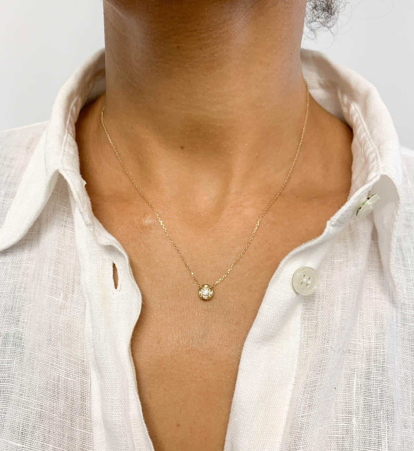 CERTIFIED Natural Diamond Necklace set with Natural Diamond, size 3 millimeters diameter, 0.12 Carat.