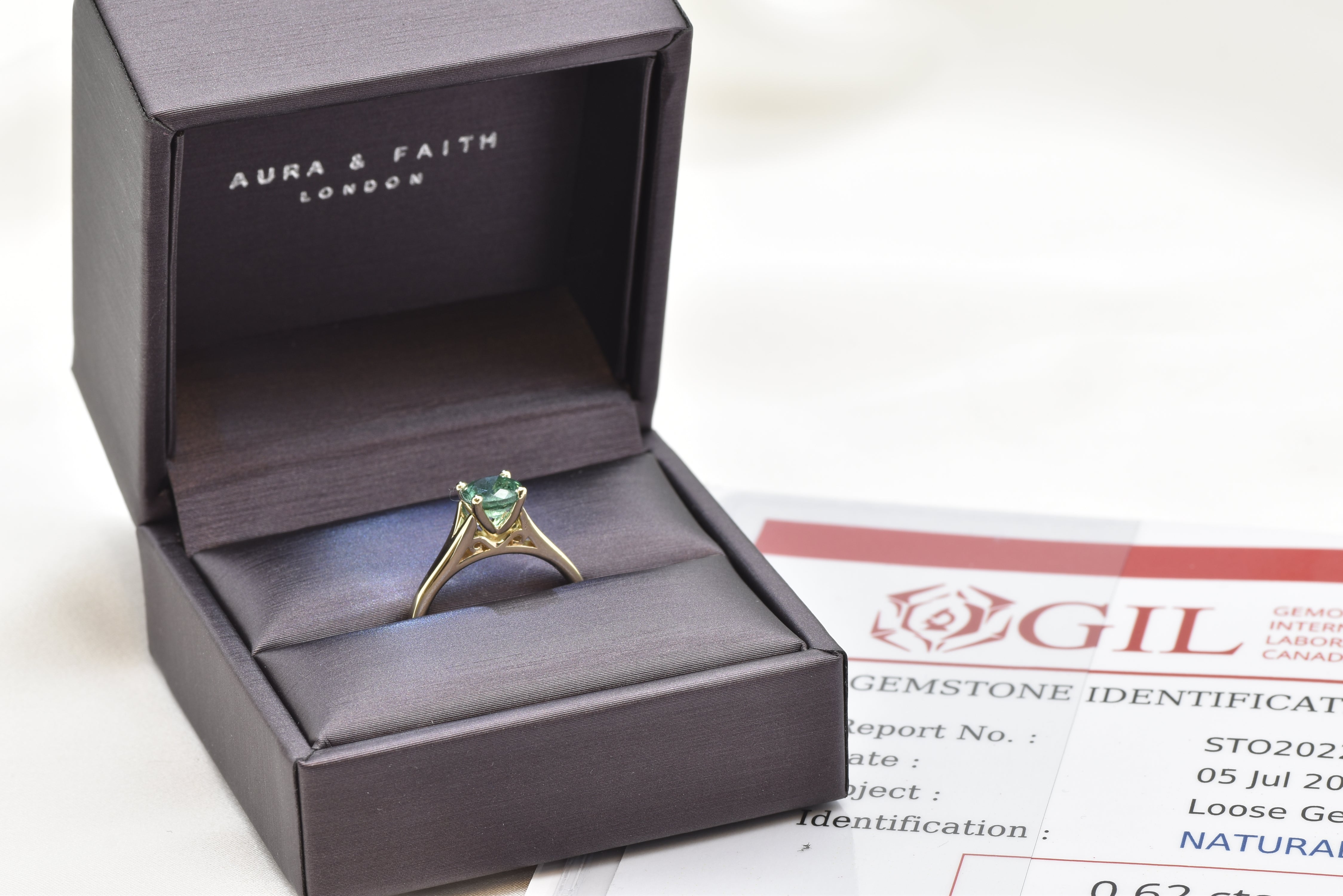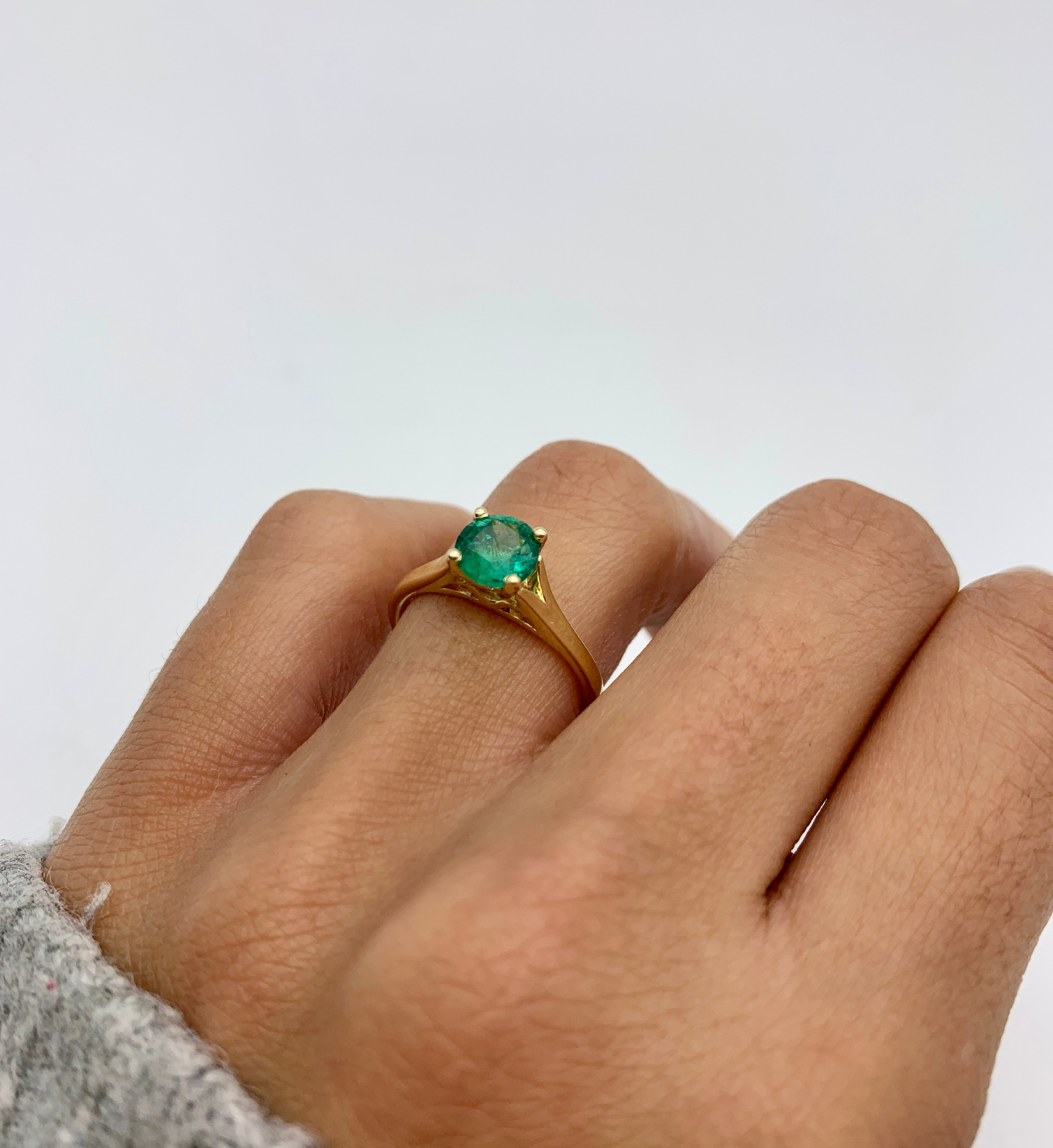 Certified Emerald Gold Ring - Genuine Emerald Ring - 1 Carat Solitaire Ring