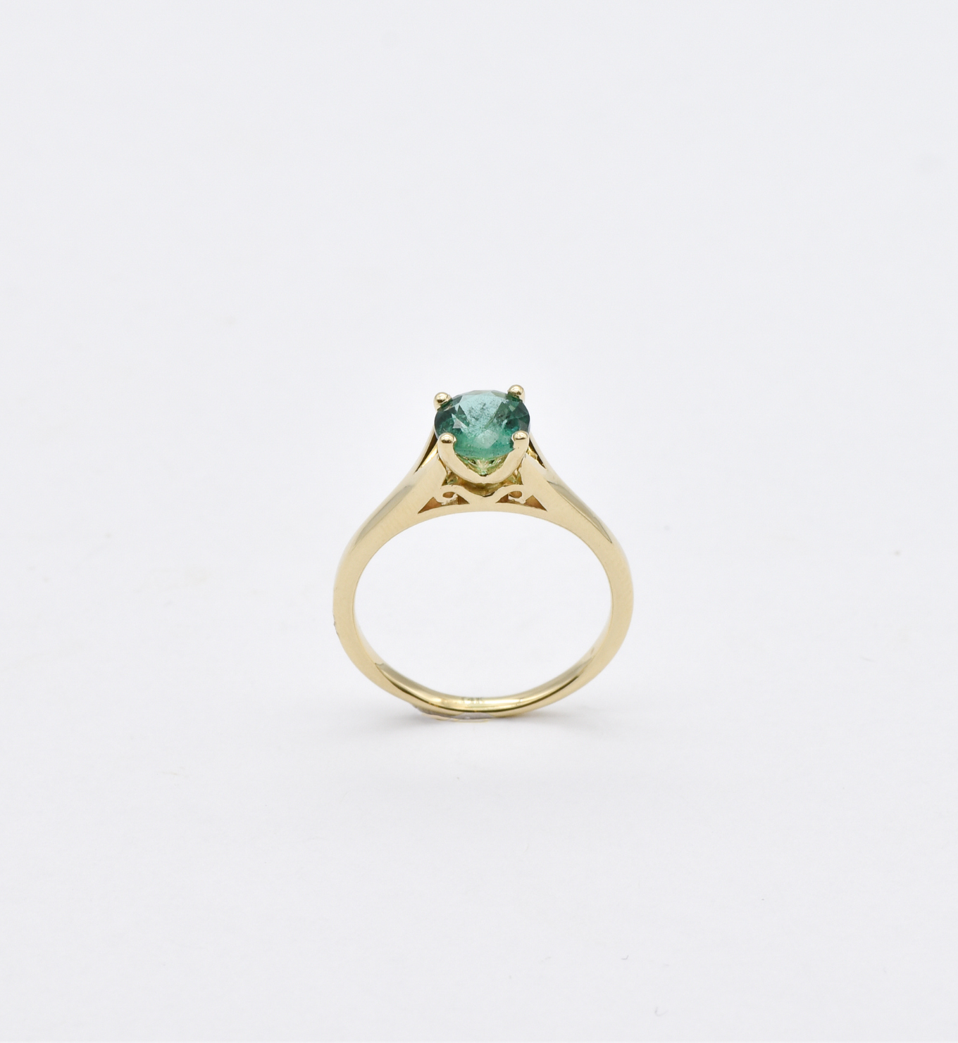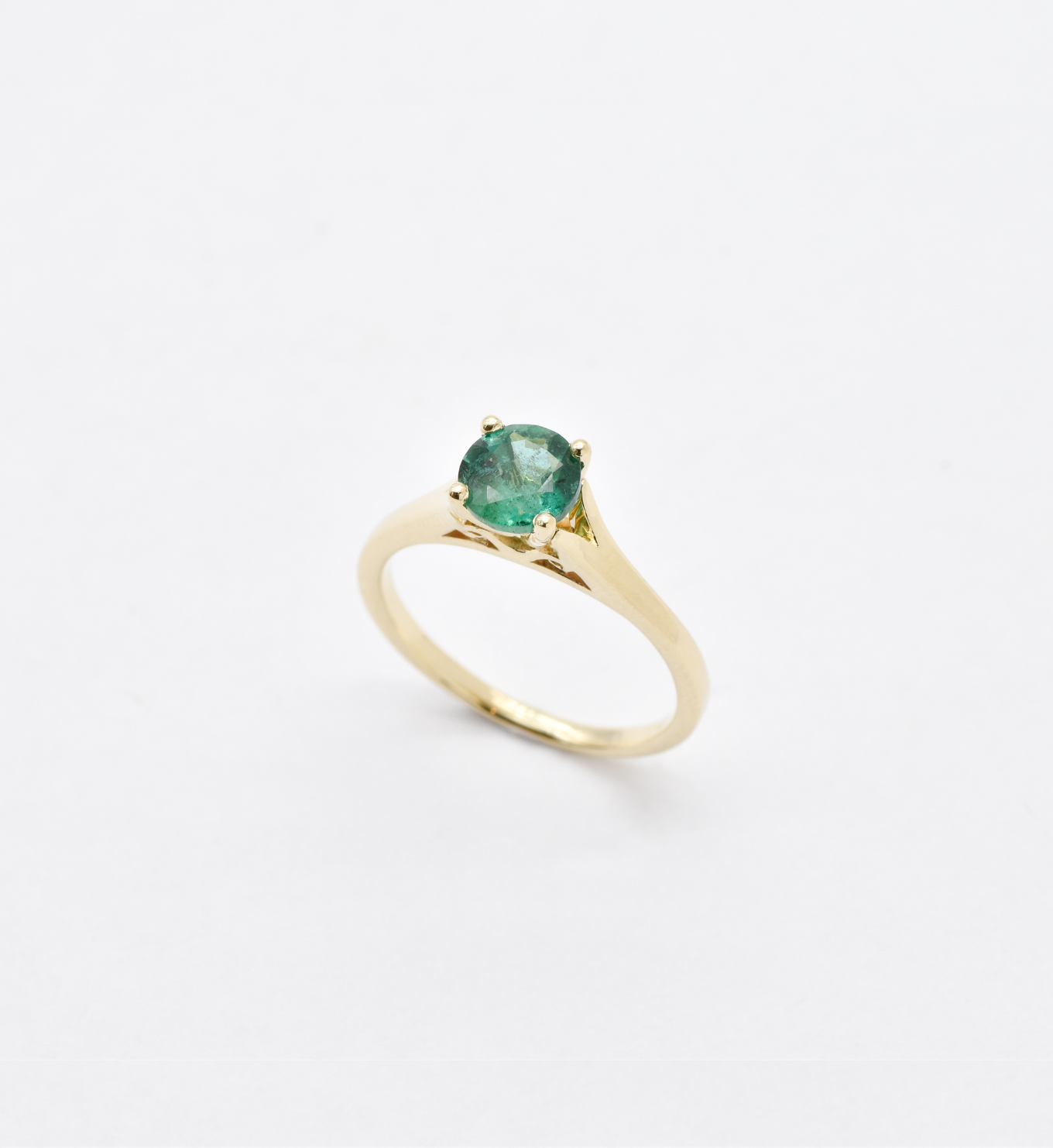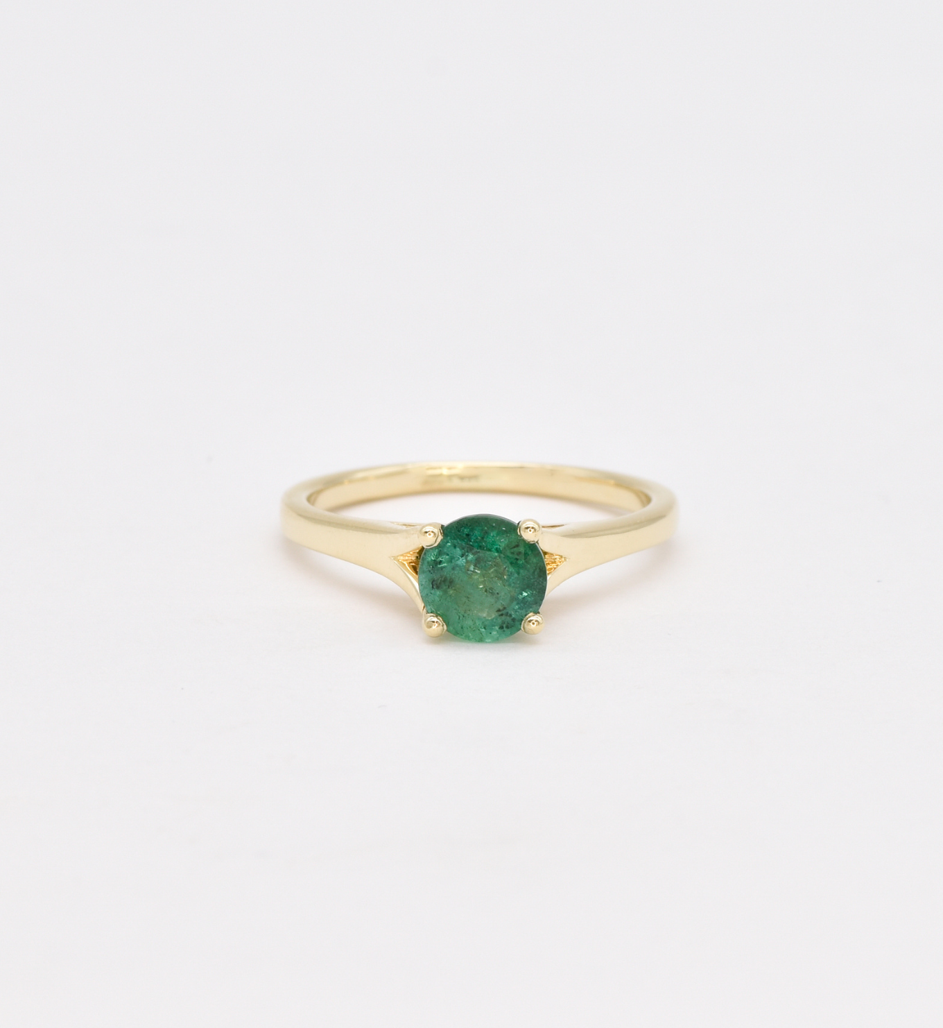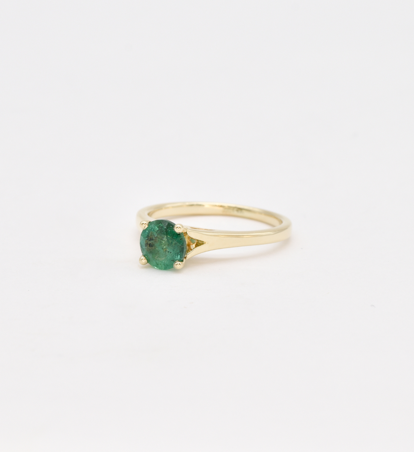 Certified Emerald Gold Ring set with Natural Emerald in a diamond cut & vivid green color, at size 6mm (0.84 Carats) sourced from Colombia.