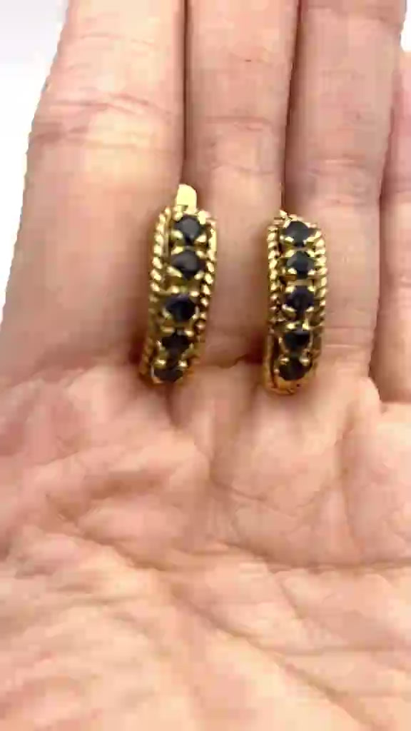 Genuine Sapphire Earrings - Gold Vertical Earrings - Blue Vintage Earrings