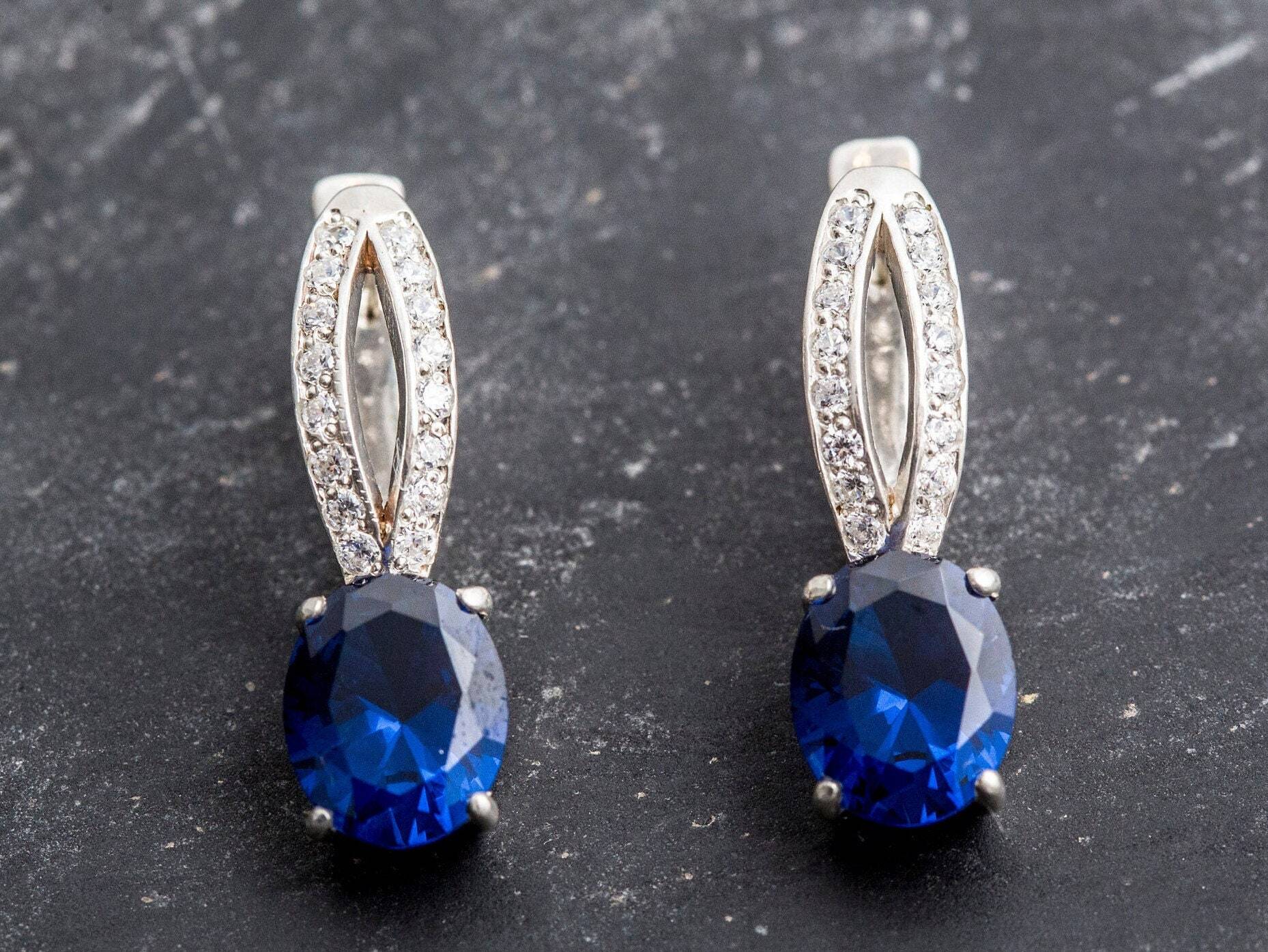 Beautiful 925 Sterling Silver Sapphire Earrings with Oval Created Blue Sapphire, perfect for September birthdays and special occasions.