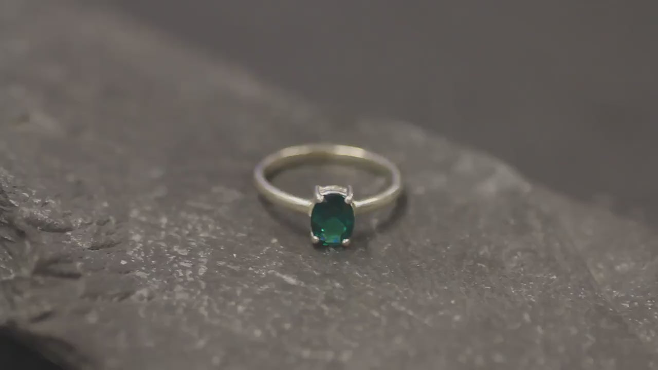 Emerald Promise Ring - Green Oval Ring - Classic Solitaire Ring