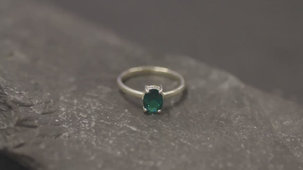 Created Emerald Ring made in 925 Sterling Silver with Oval Created Green Emerald in Prong setting, May Birthstone gift idea, symbolizes, ideal for everyday wear and perfect for birthday gifting and special occasions.