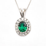 Created Emerald Pendant made in 18k Gold Vermeil with Oval Created Green Emerald in Halo setting, May Birthstone gift idea, symbolizes, ideal for everyday wear and perfect for birthday gifting and special occasions.