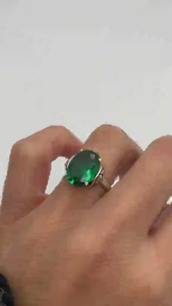 Large Emerald Ring - Green Statement Ring - Vintage Tribal Ring