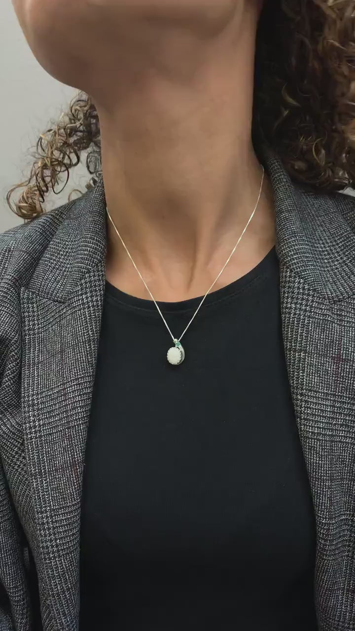 Natural Australian Opal Pendant made in 925 Sterling Silver with Oval Natural White Australian Opal in Prong setting, October Birthstone gift idea, symbolizes hope, purity, and truth, ideal for everyday wear and perfect for birthday gifting and special occasions.