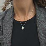 Necklace length guide from 16 inch, 18 inch and 20 inch Adina Stone necklaces, real neck view.