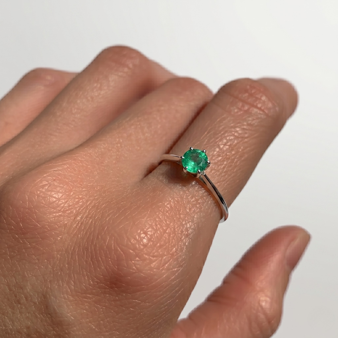 Natural Emerald Ring in 925 Sterling Silver, featuring a round green emerald; May birthstone symbolizing growth and harmony.