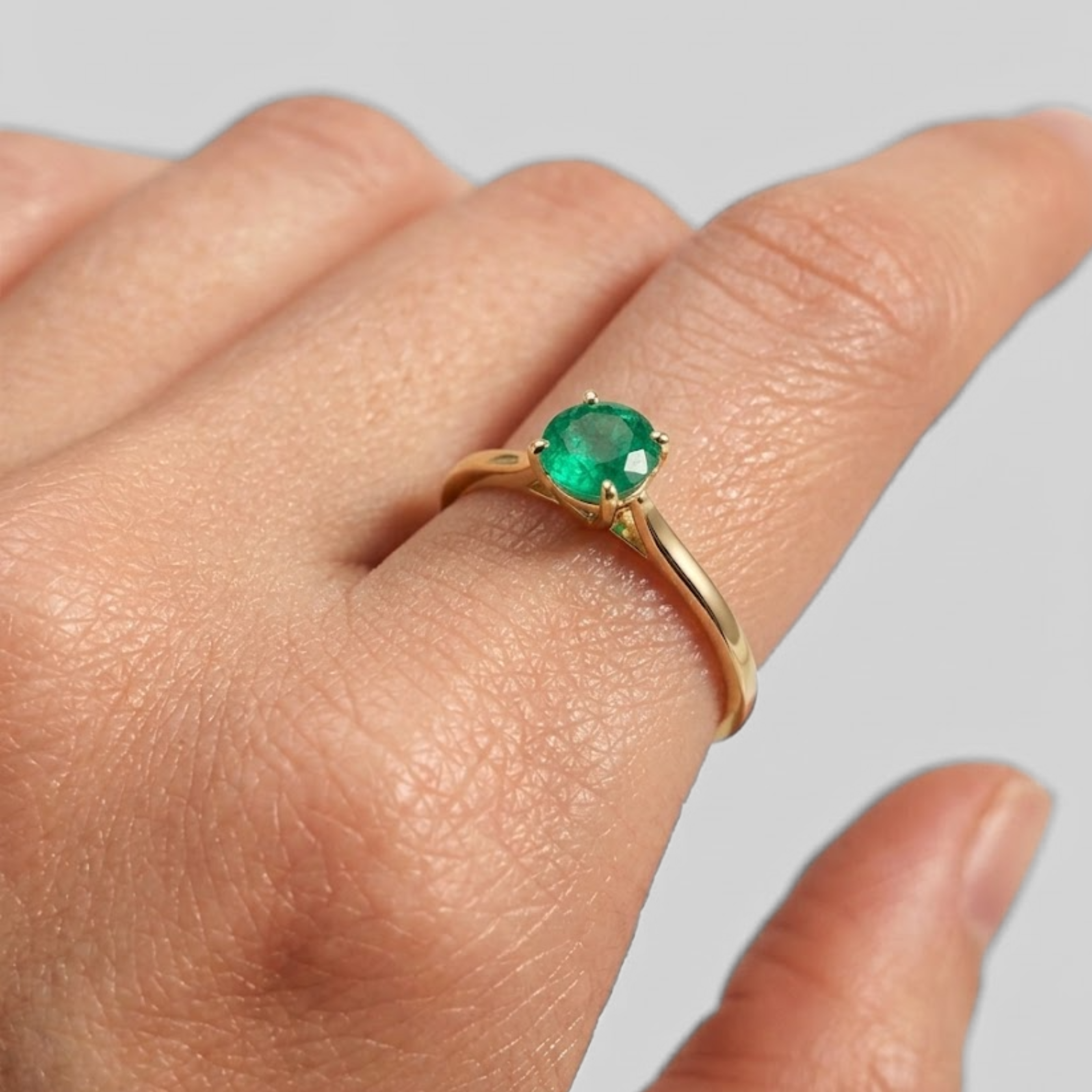 Natural Emerald Ring made in 18k Gold Vermeil with Round Natural Green Emerald in Solitaire setting, May Birthstone gift idea, symbolizes growth, harmony, and deep emotional healing, ideal for everyday wear and perfect for birthday gifting and special occasions.