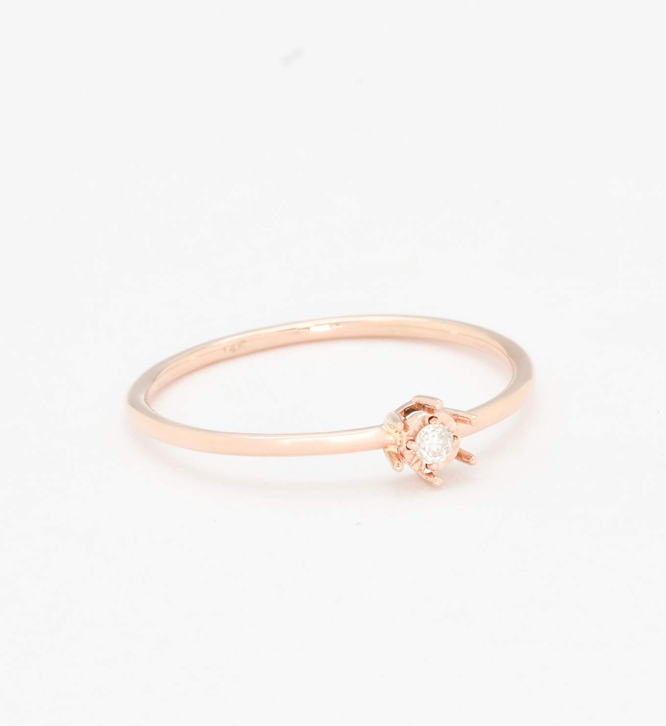 Dainty Diamond Rose Gold Ring - Certified Real Diamond Ring - Solid 14k Rose Gold Diamond Ring